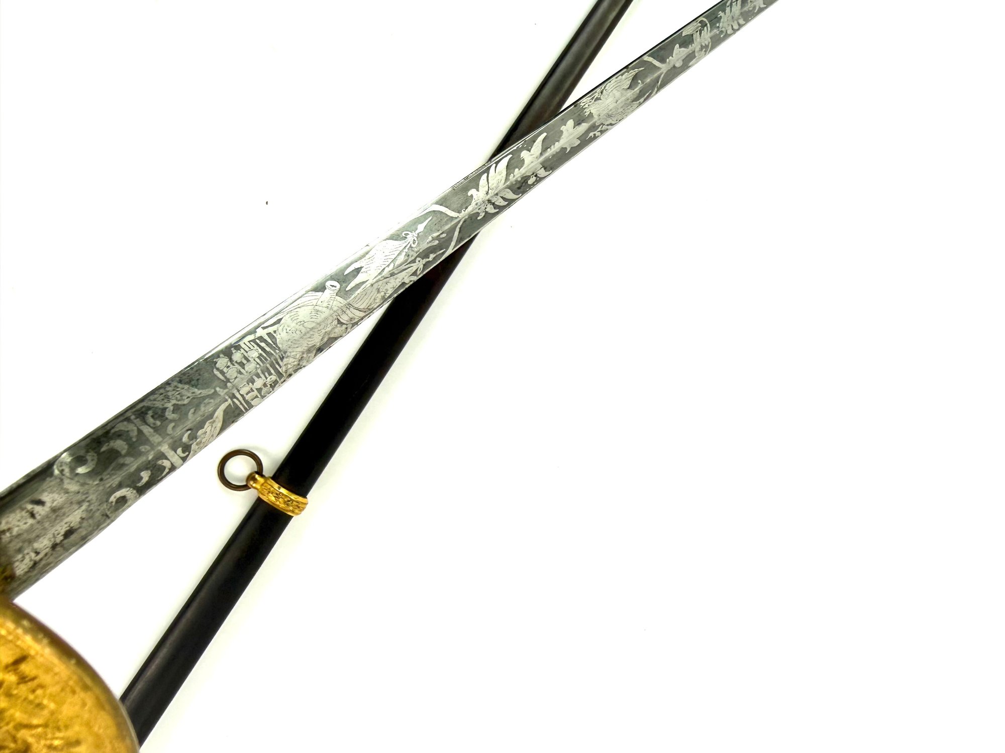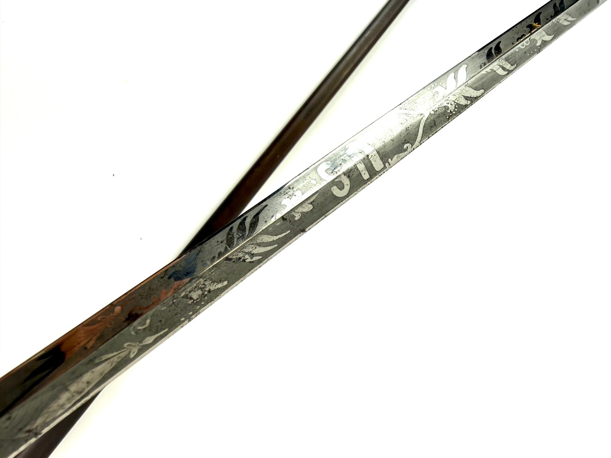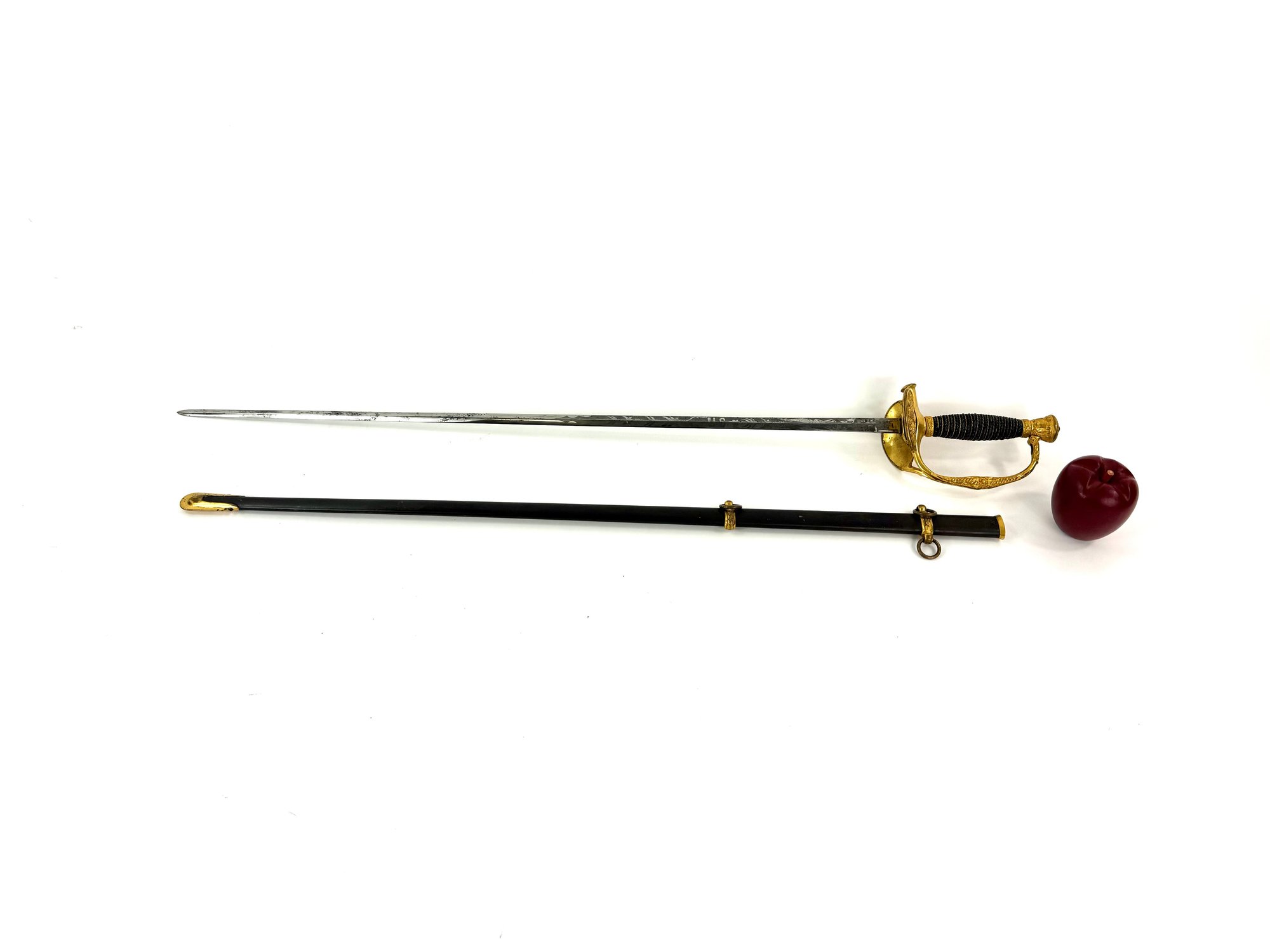 This Civil War era sword is in excellent condition with its black sheath and matching dark handle grip it depicts the eagle and shield of arms. Made by the Ames company Chicopee, Massachusetts.