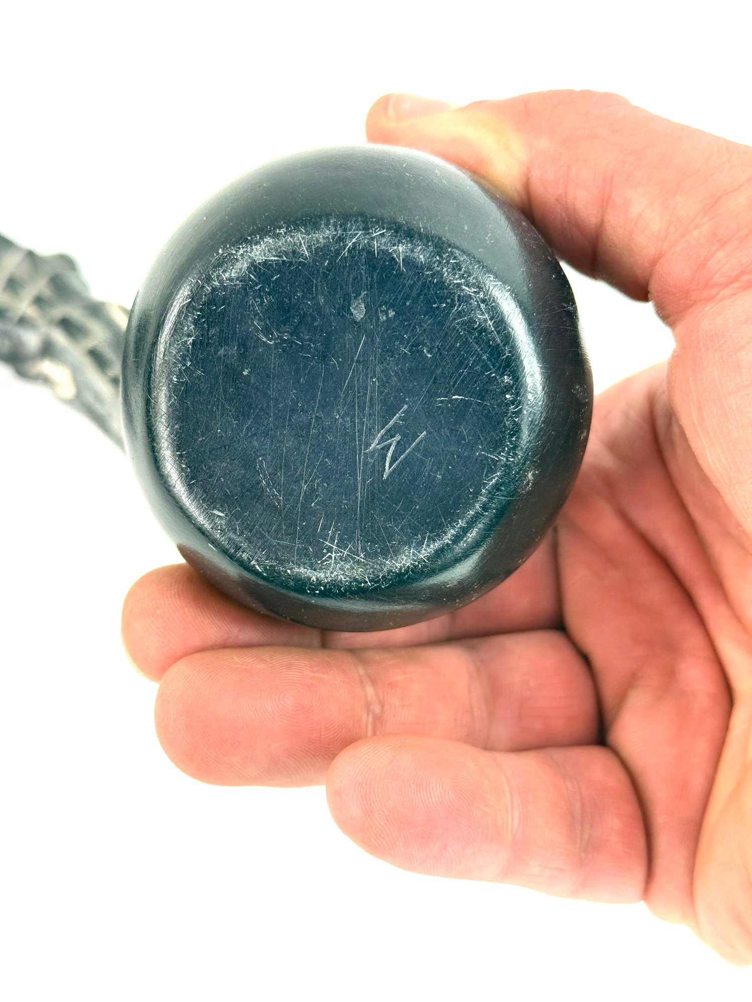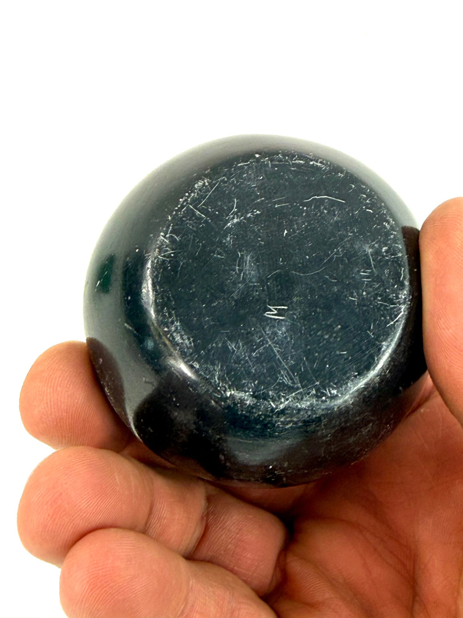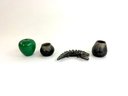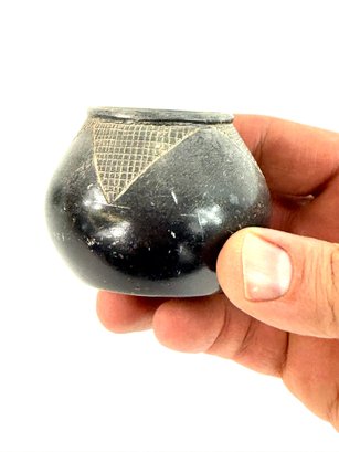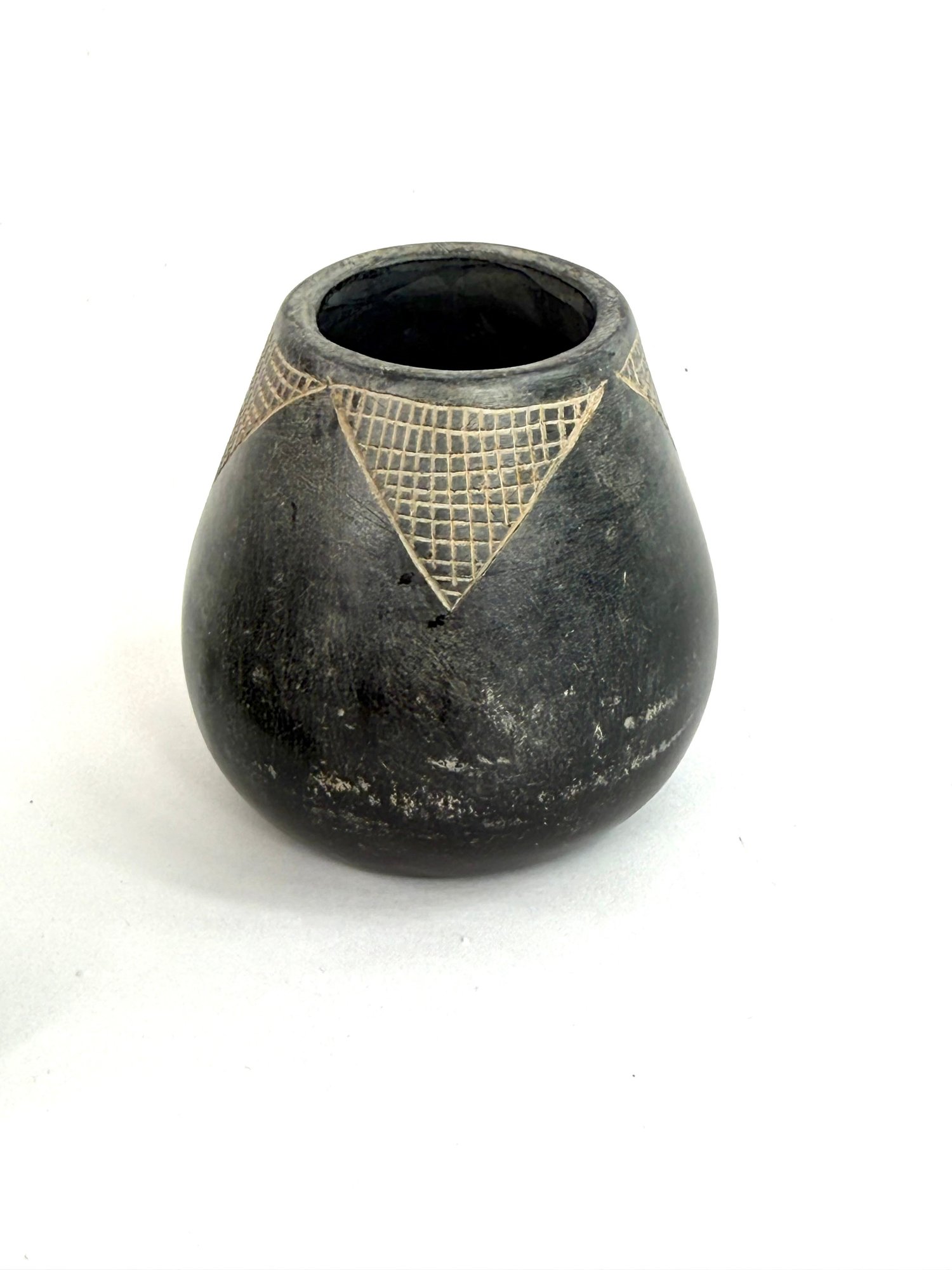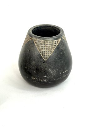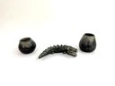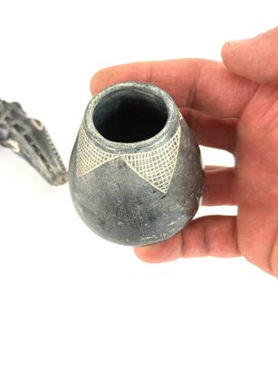 This lot contains two small bowls with grid like patterns and carved reptile. Please see photos for size and condition.