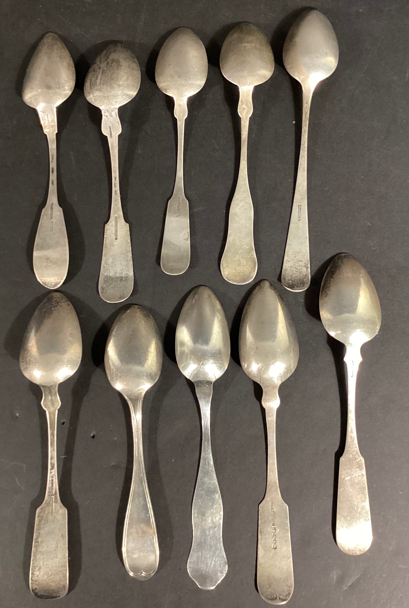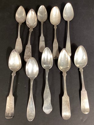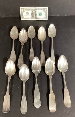Here we have 10 antique coin silver serving spoons.