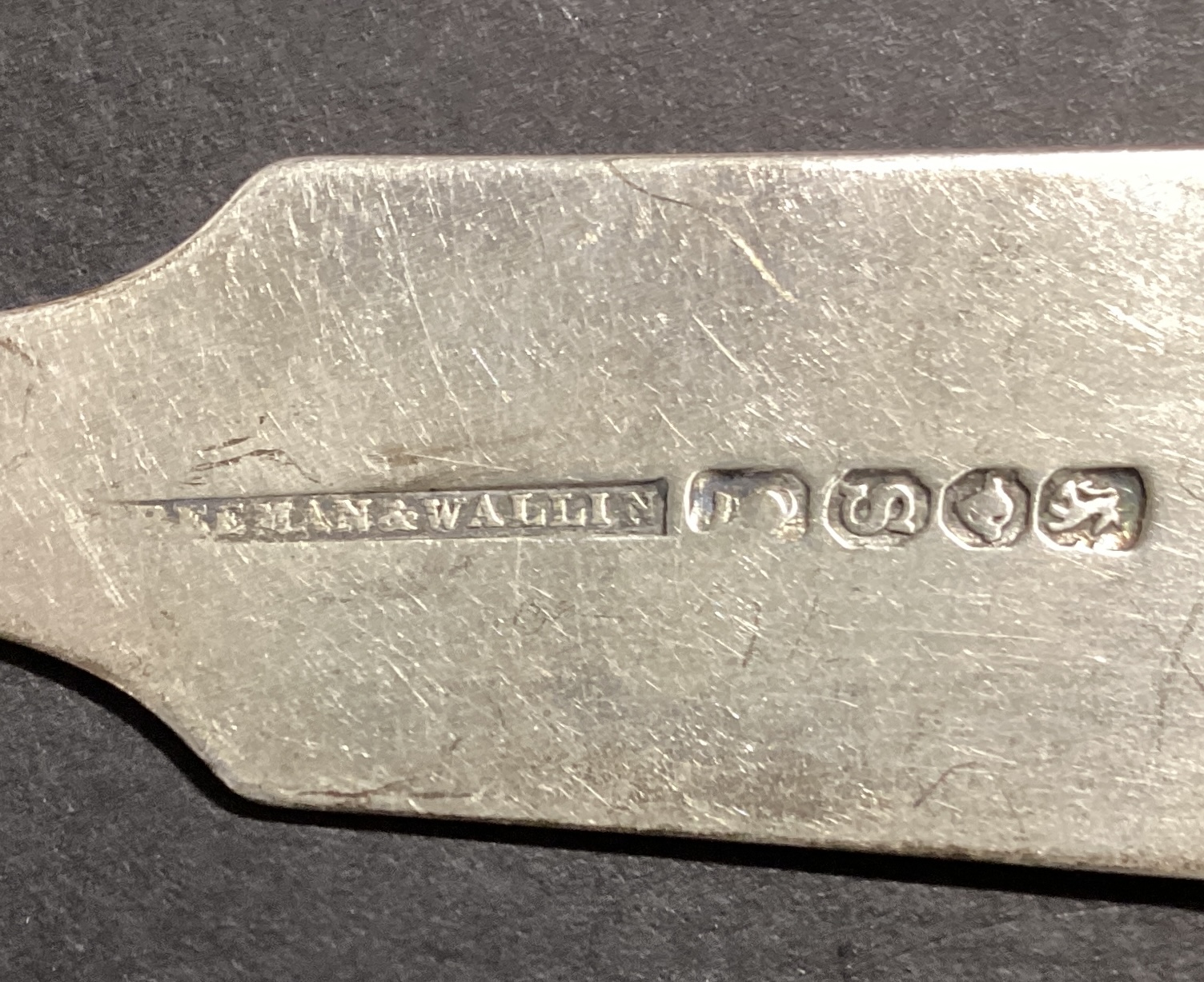 The spoons have markings of the company and overall age on the back handle of the spoons.