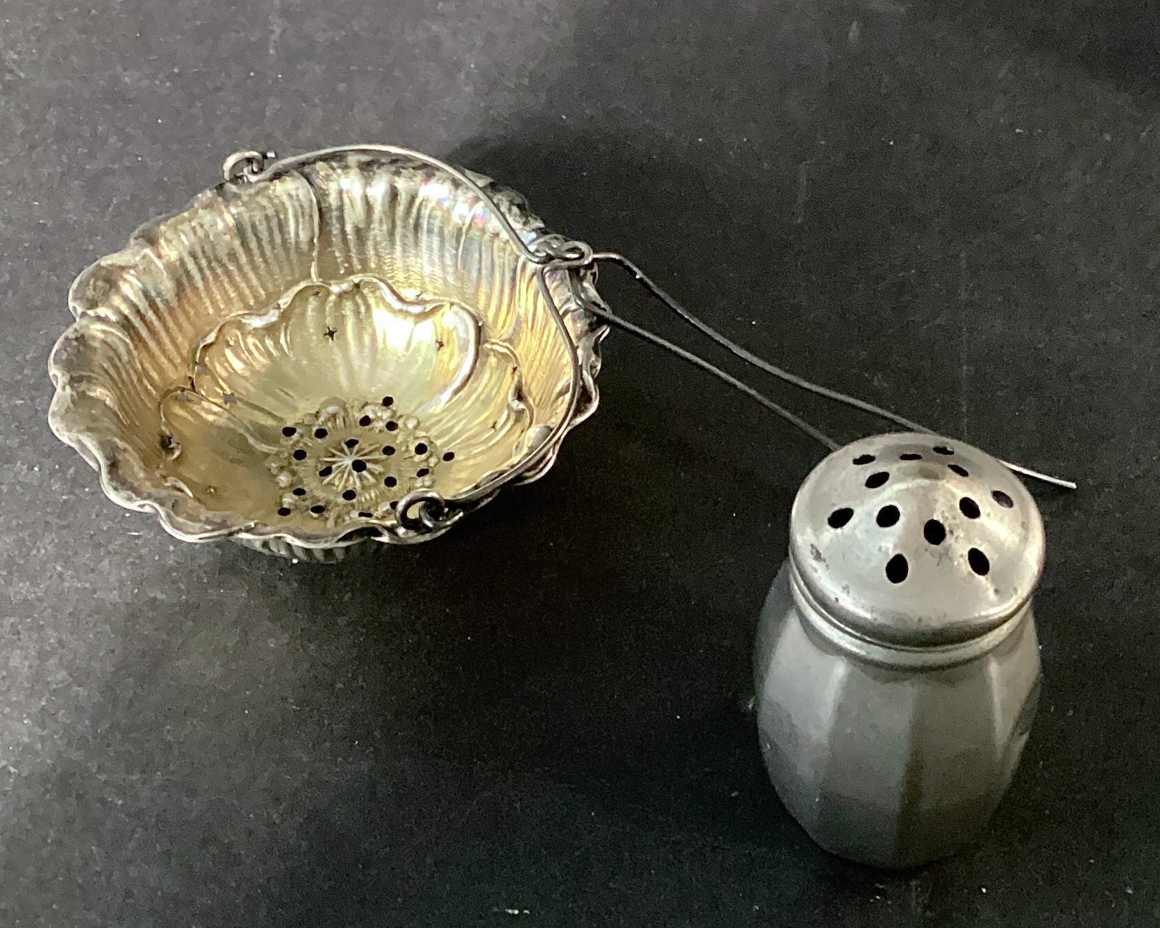 * 1 sterling salt shaker with a modified rib design, and screw tops.Note there is a small dent on one of the ribs. This measures approximately 2” in height.