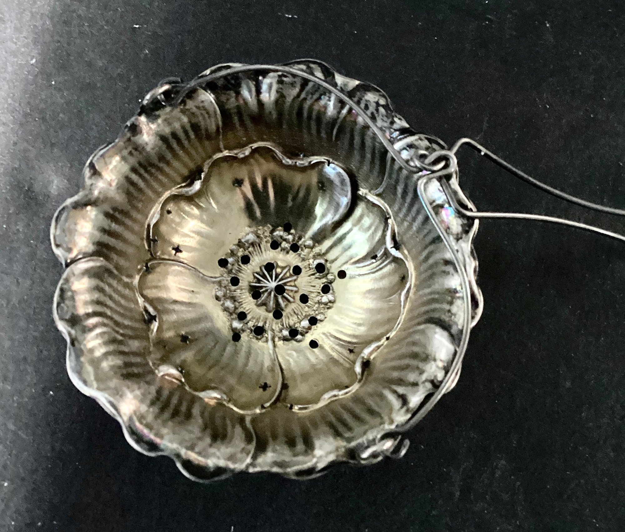* 1 tea leaf strainer with a beautiful flower design.best used when pouring tea from your favorite tea pot. This measures approximately 2.25” in diameter.