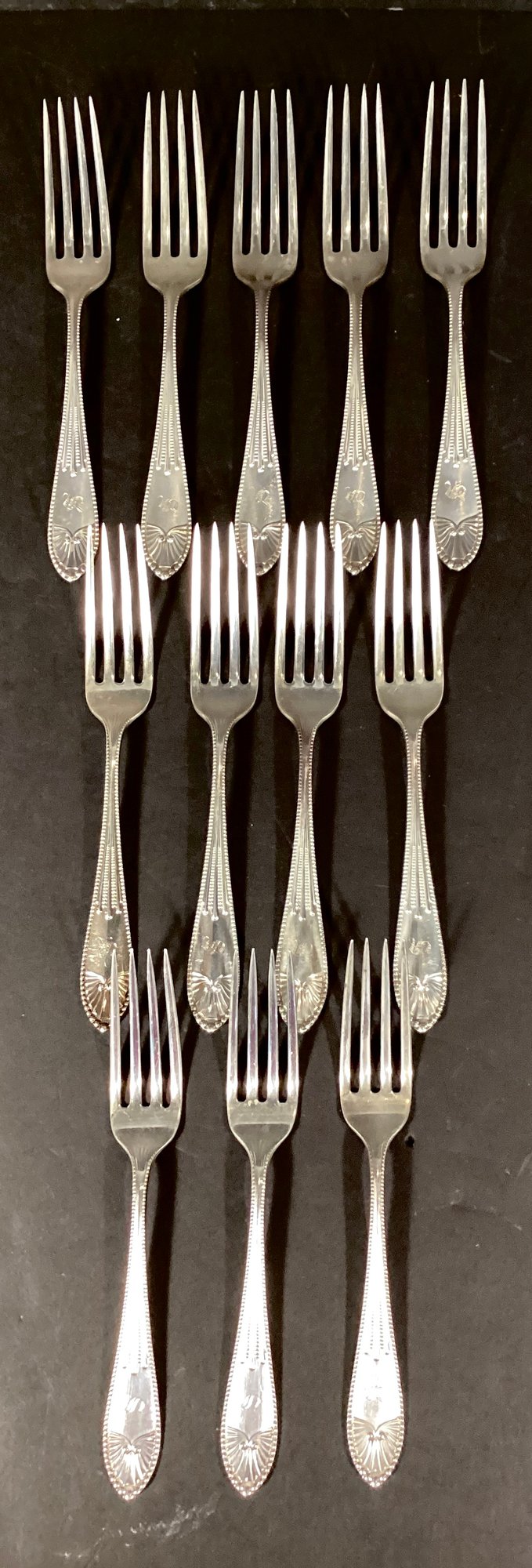 Here are 12 lovely antique dinner forks from Gorham in the ‘Chippendale’ pattern.