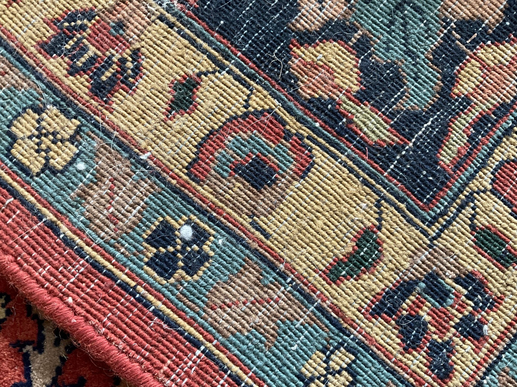 This carpet has a wonderful pallet and nicely aged colors. This tribal rug is vegetable died wool, which will only get more elegant with age. This rug has a nice thick pile, no holes no repairs and no discoloration other than what would be expected through normal use and age. the soft earth tone colors have melded together beautifully. Antique Lillian carpets are not common because they’re one of the most elegant, tribal rugs that were available in the day.. All will with a cotton foundation ready to use.