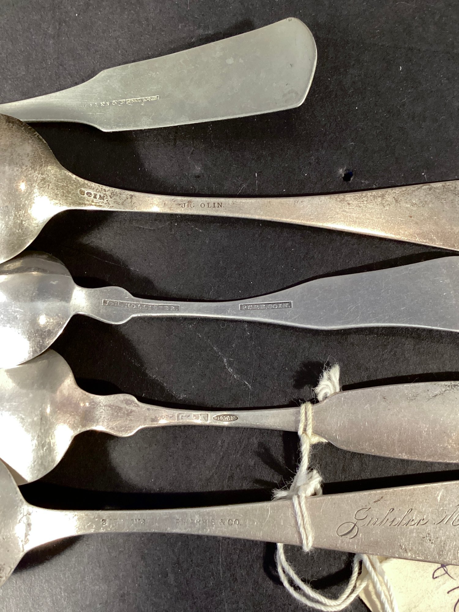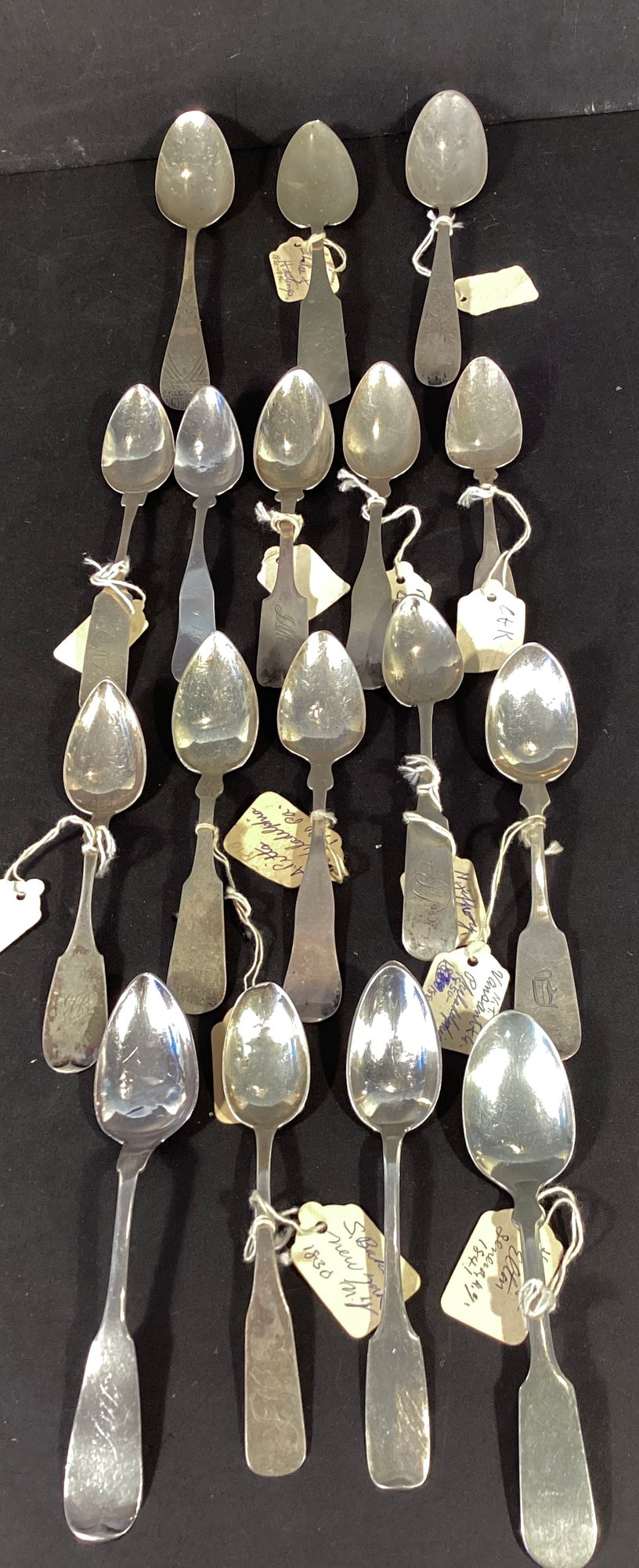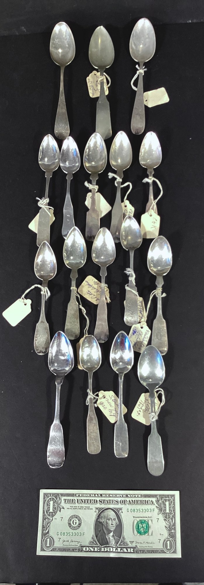 Here we have 17 coin silver fiddleback spoons for your collection.
