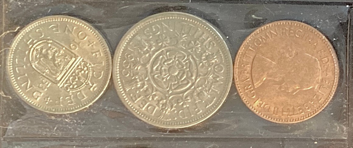 * 9 1953 coins including: half crown, a penny, 2 shillings, a farthing, a pence, half-penny, a florin, and another coin. All appear to be from 1953.