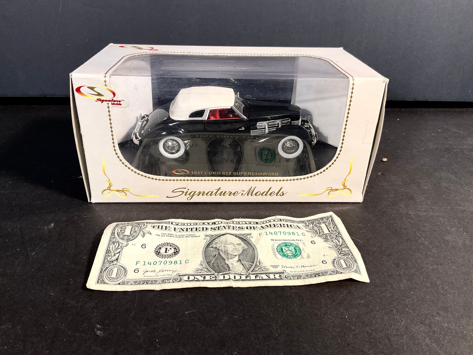 The box is a little scruffy, but the model car is in perfect condition. As you can see from the pictures as a bright cherry red color. Very nice.