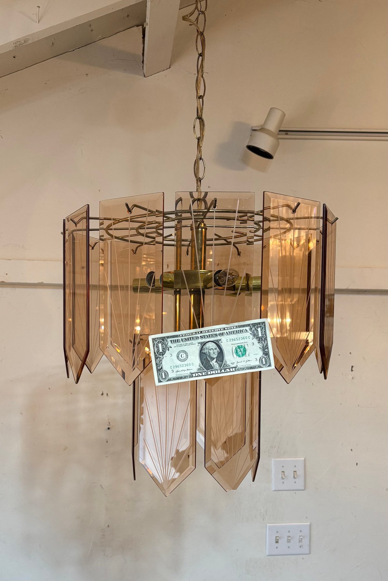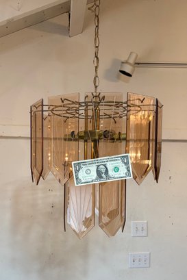 Right out of the 80’s era this pendent chandelier is ready to hang and enjoy. All the glass panels are there and one has a small ship ( see picture ).