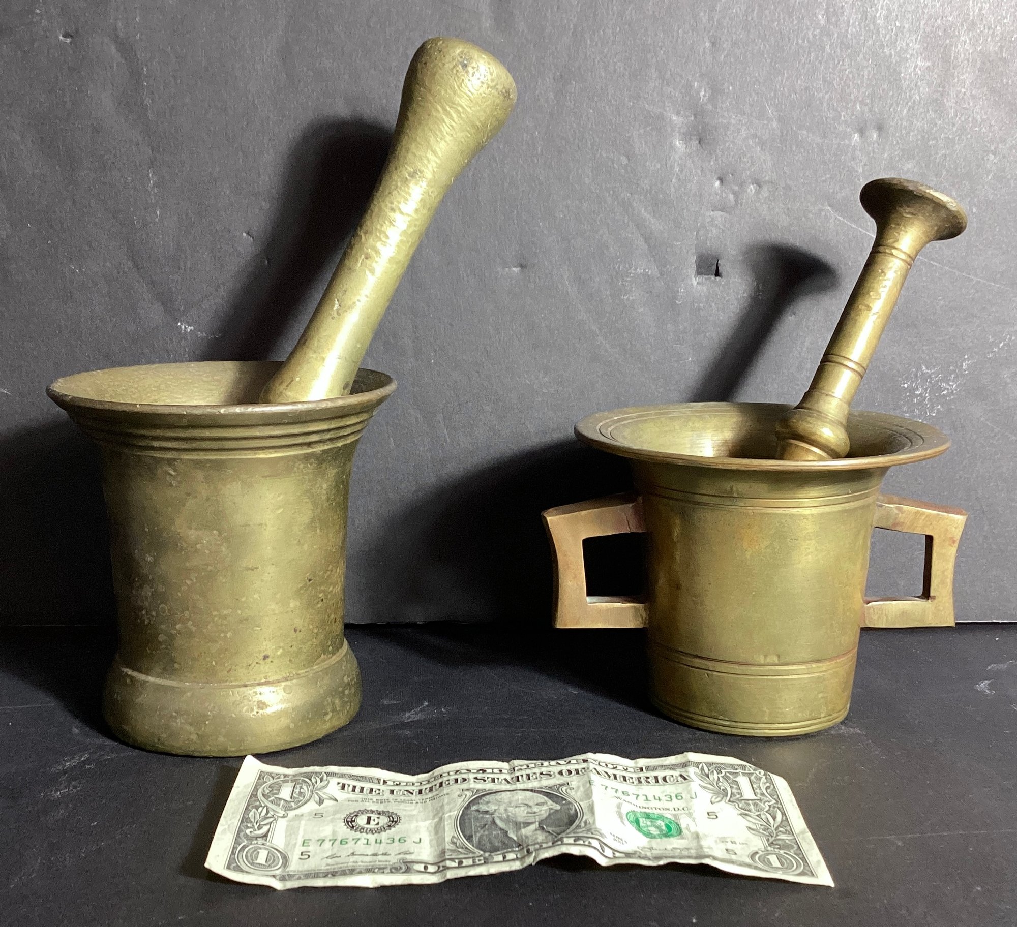 Here we have two very heavy, antique mortar and pesto items for your consideration. Each are quite substantial in weight and would be a great addition to your antique collection.