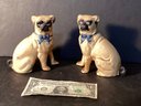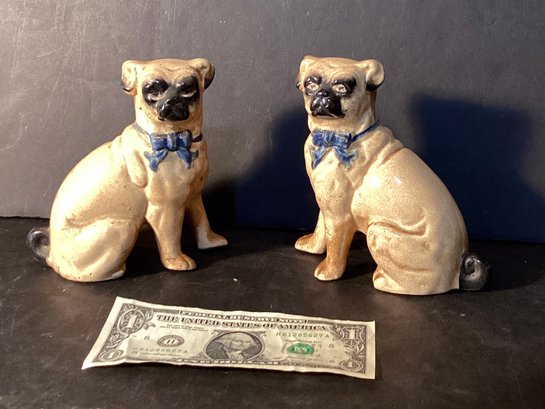 The pug dogs have been glazed with a soft, warm cream tone and night sky blue bowties.