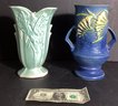 * the first vase is by Rosedale. This has a raised Freesia design and has been painted in a semi matte blue glaze. There is a small repair on the rim of the vase. The vase measures approximately 10.25” and has a 5.00” diameter at the top of the vase.