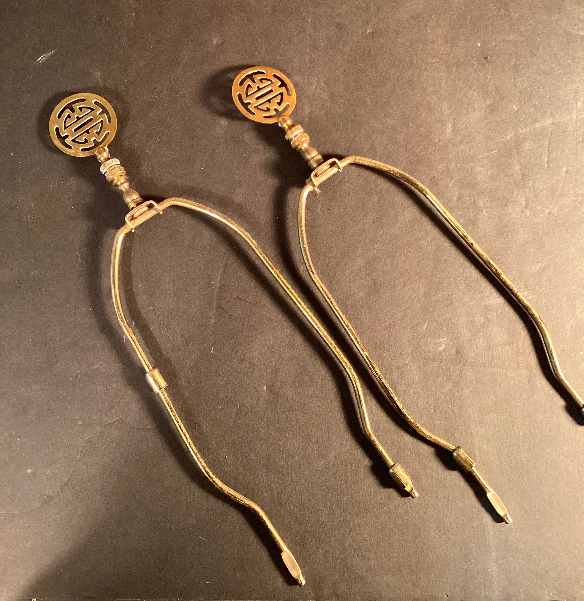 *each harp is sturdy with Asian lettering on each finial.