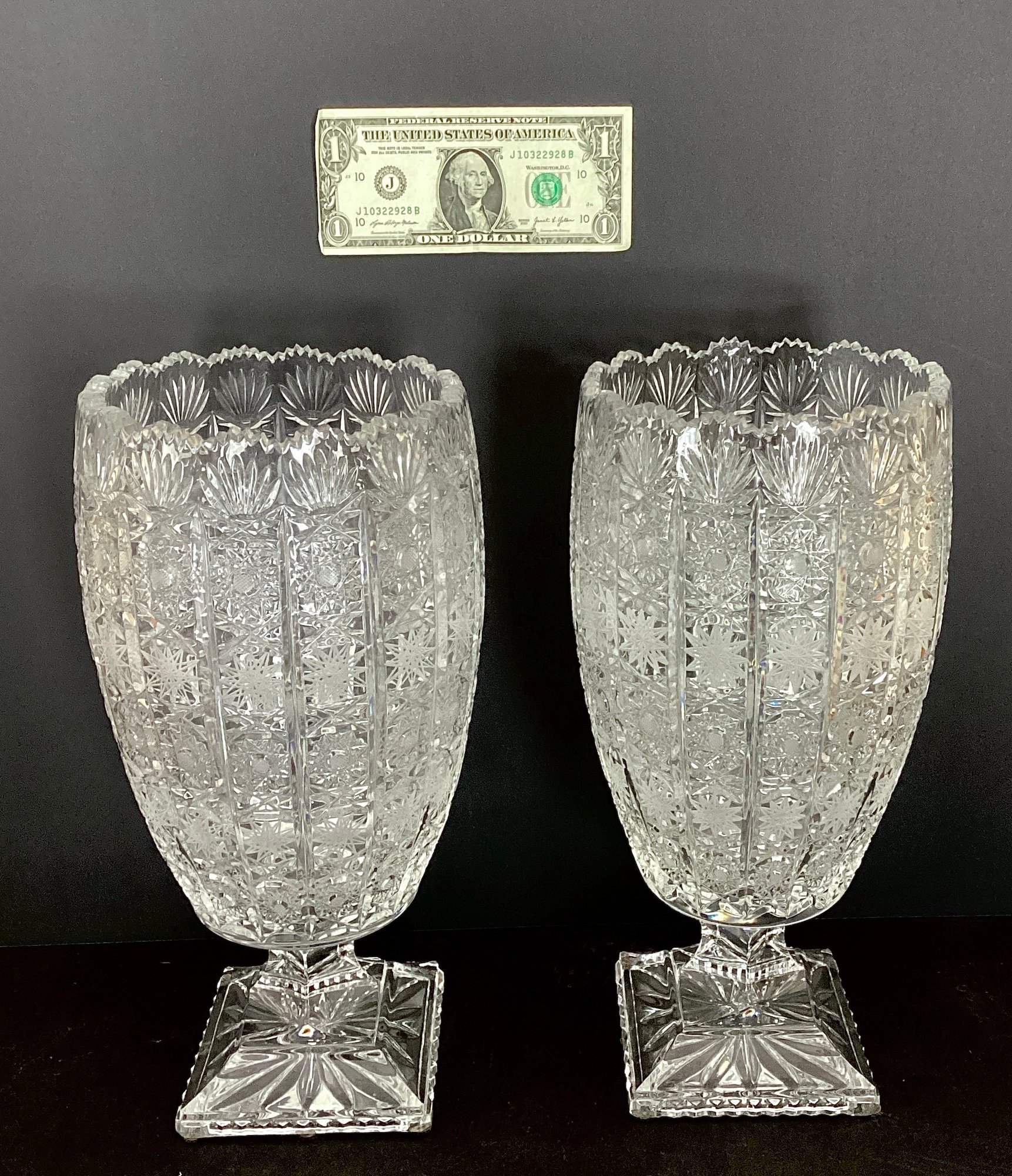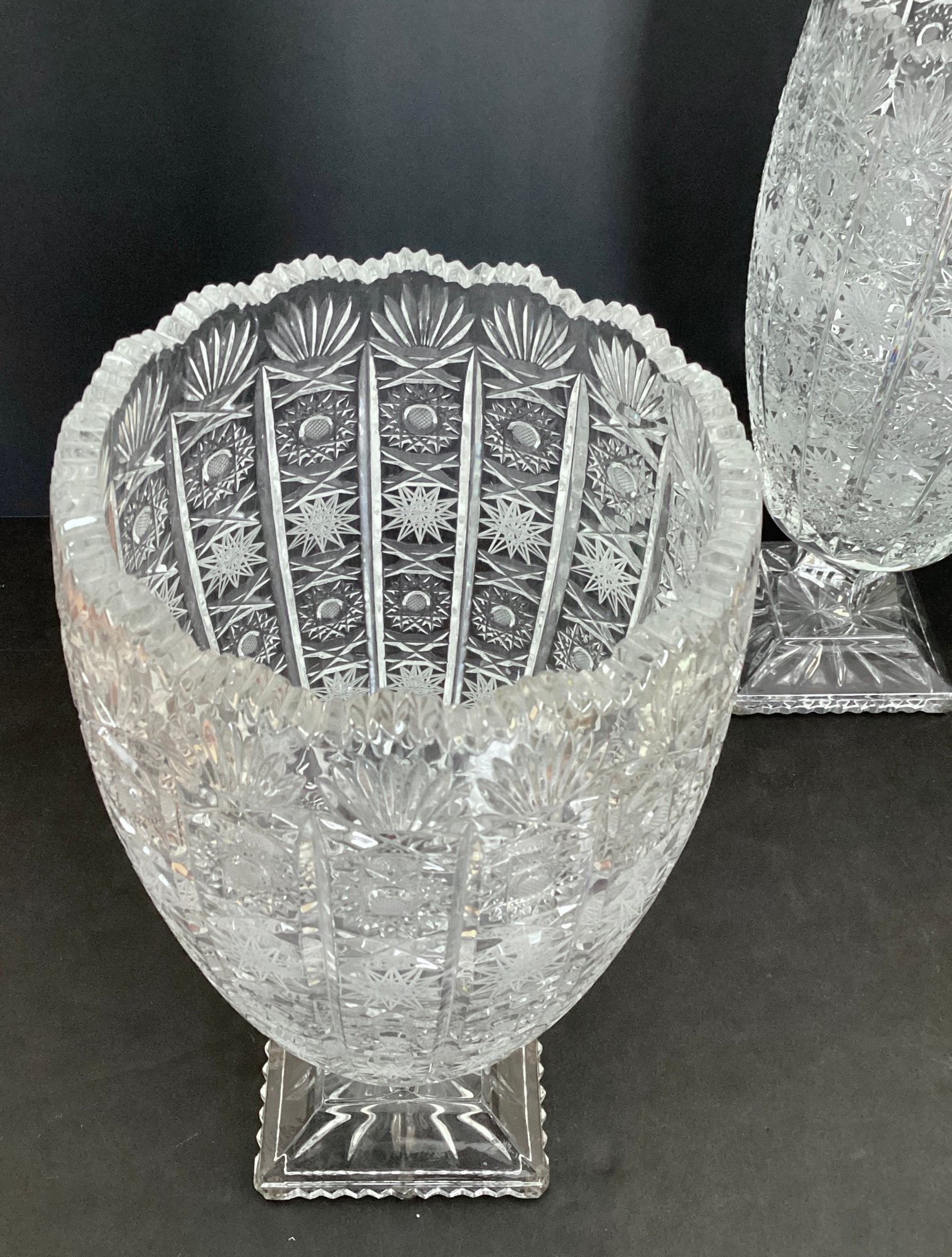 Brilliant cut crystal starbursts no stars pointed arches sawtooth rim