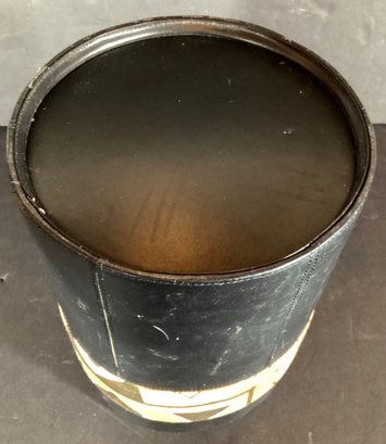 Here we have two very nice leather clad wastebaskets for your consideration.