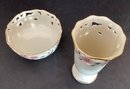 * Barrington pattern open pierced vase. 7” in height x 4” in diameter.