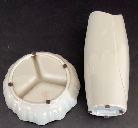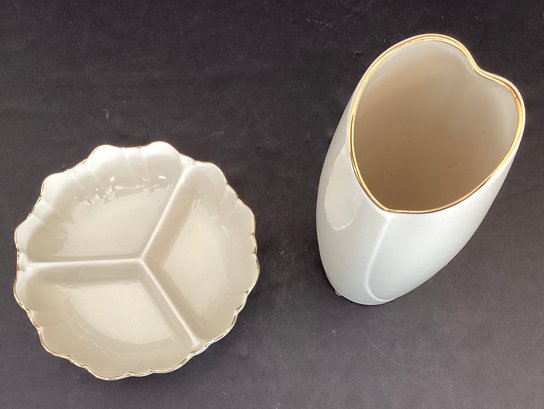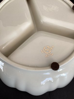 * A Lenox divided candy dish ‘Symphony’ collection. Gold rimmed, and measures 8” in diameter.