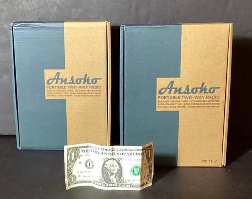 Here we have 2 new in box Ansoko 2 way radios for your communication needs,
