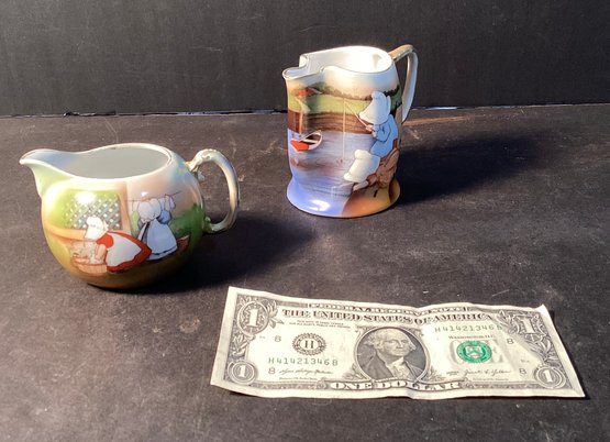 2 Royal Bayreuth pitchers in the Sunbonnet Babies series.