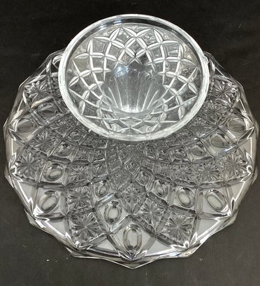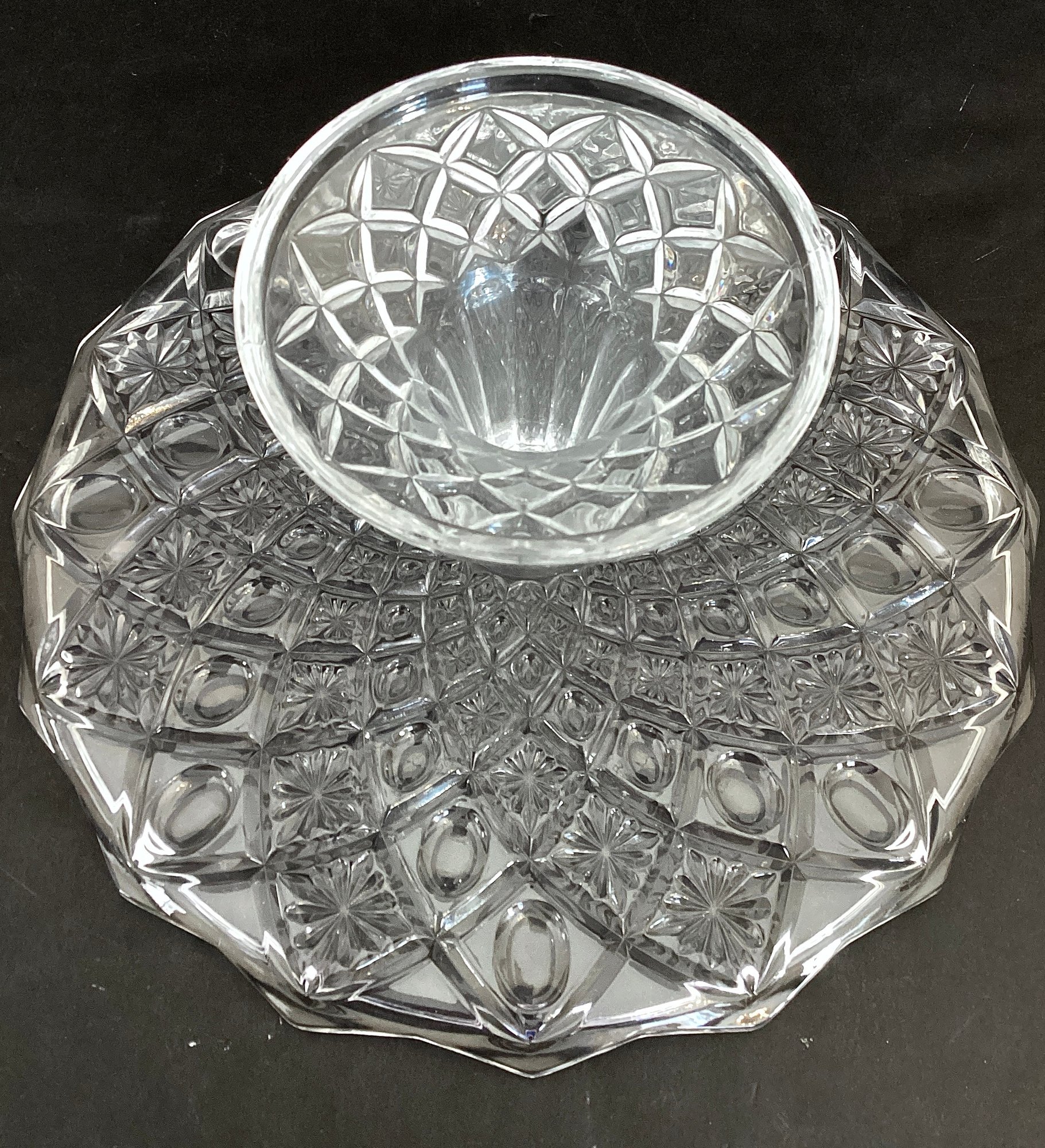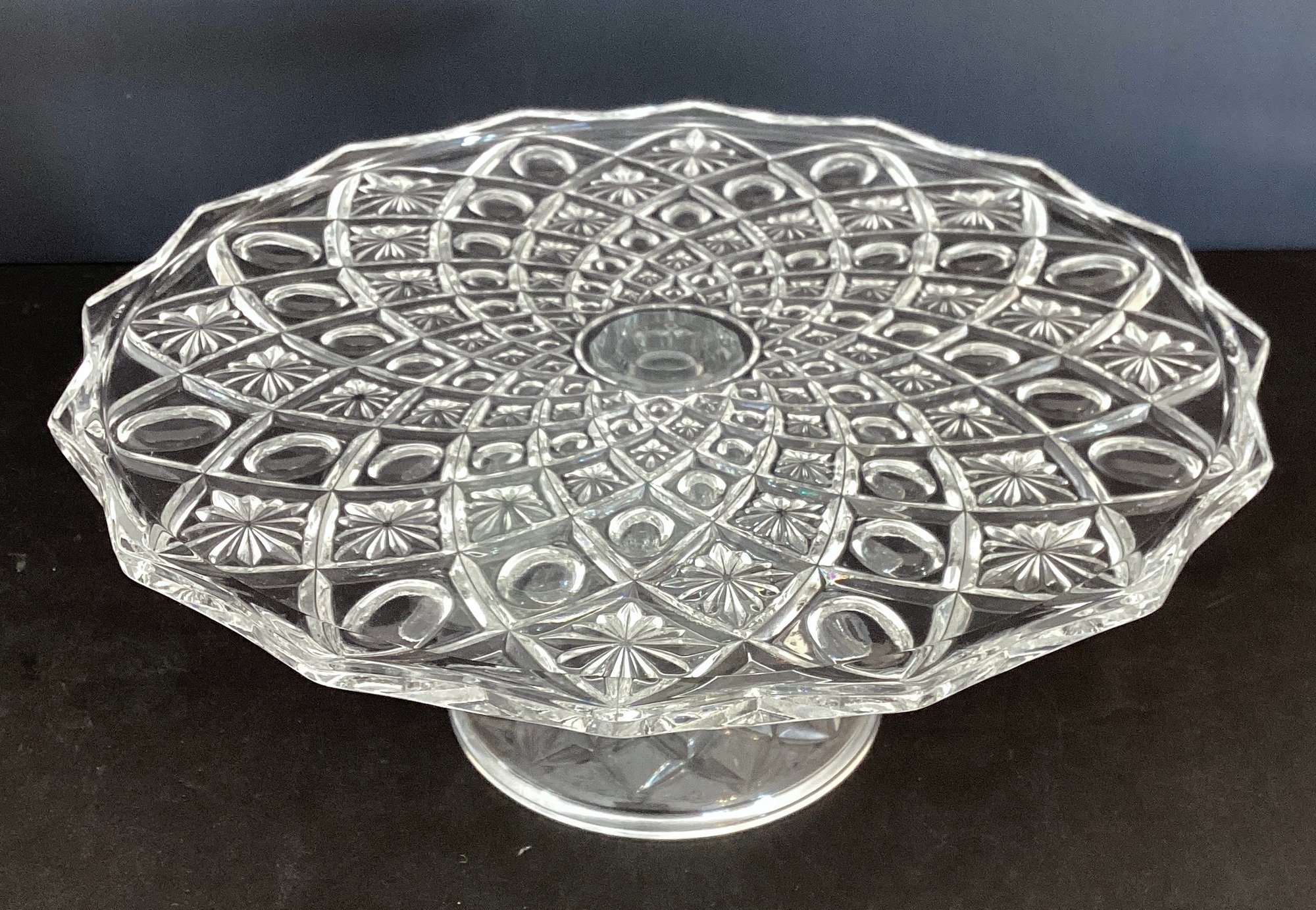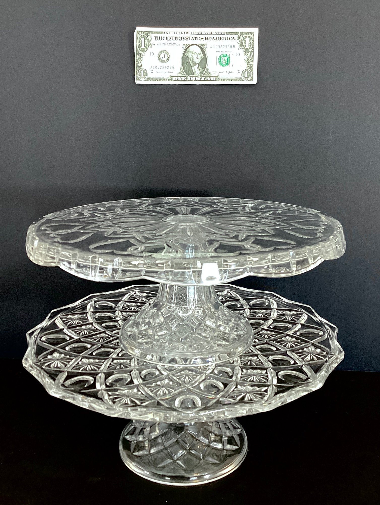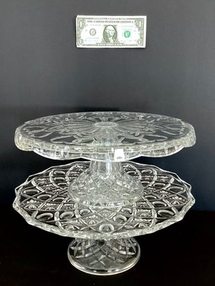 2 pressed glass footed cake stands. 2 different patterns. Never used.