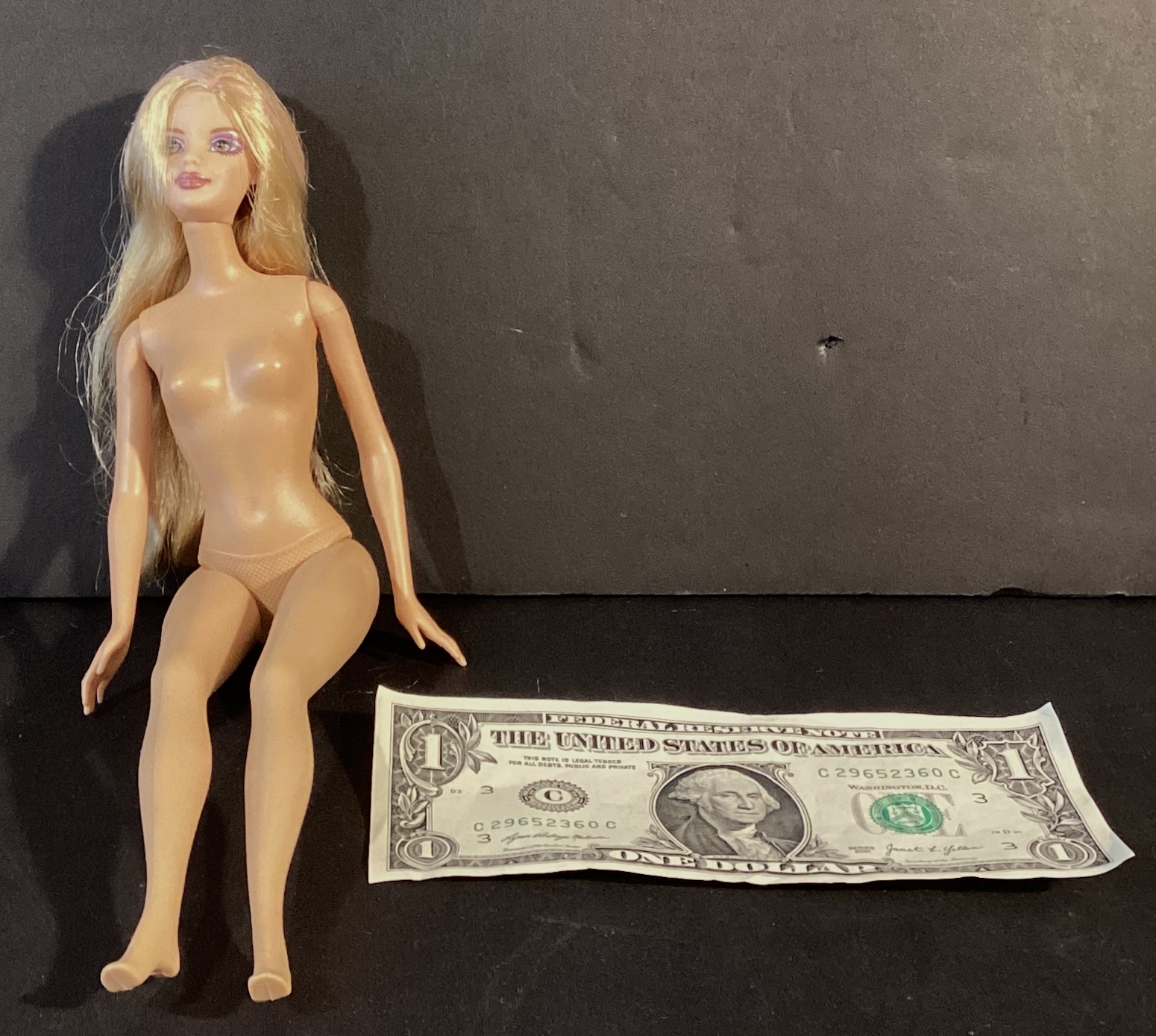She was purchased several years ago and was kept wrapped with netting around her hair, and never used.
