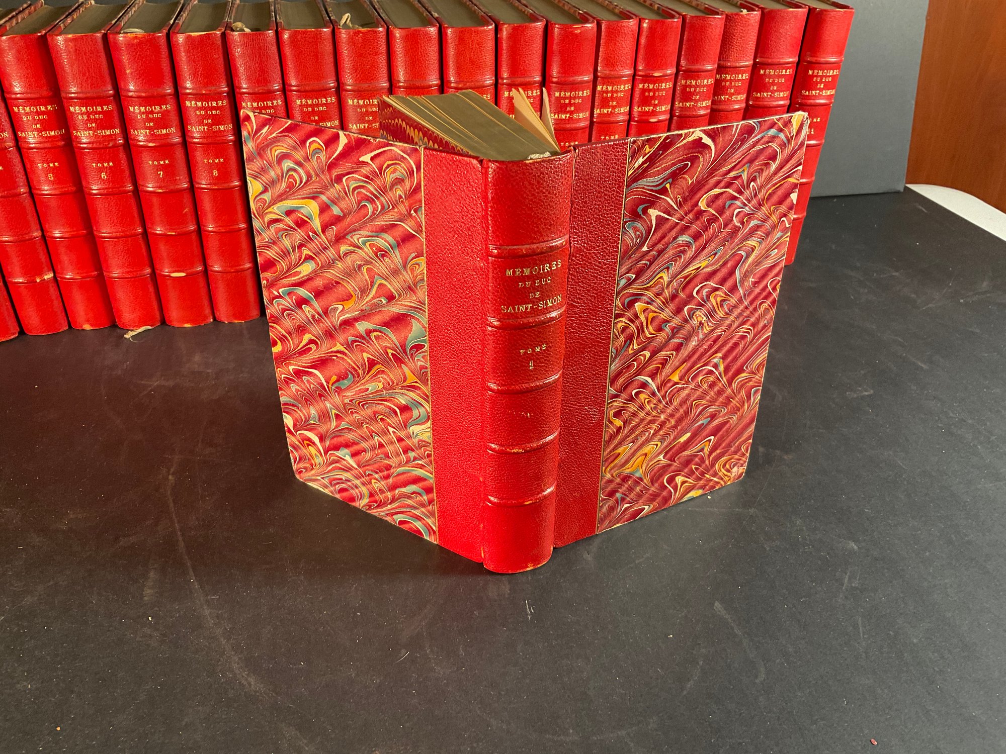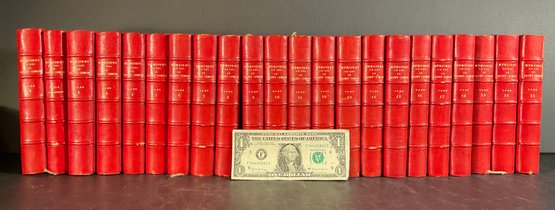 These Books are all in very good condition, Gold embossed leather binding & corners. Published in 1909, Quality red leather for a great display as well. Written in French. All the books were very well cared for, and kept in a closed bookcase to preserve them.
