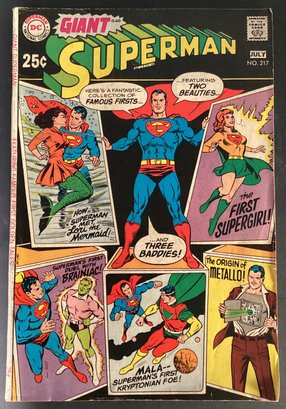 * the first is a 25 cent June-July 1969 comic book (July No. 217) adriene, Superman, Lori the mermaid, Braniac, Metallo, and the first Supergirl!