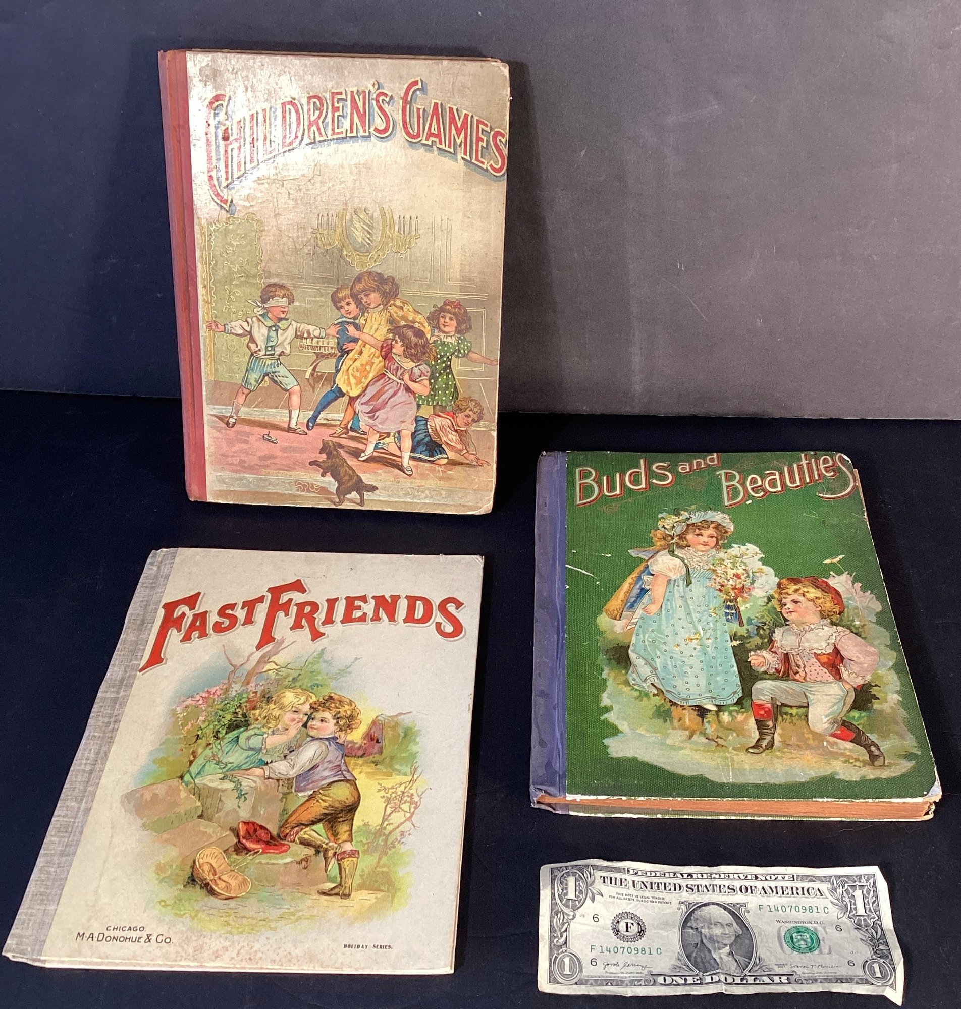 * ‘Children’s Games’: copyrighted in 1903 by the W.B. Conkey Company made from pressed cardboard cover, and black and white illustrations. 128 pages.
