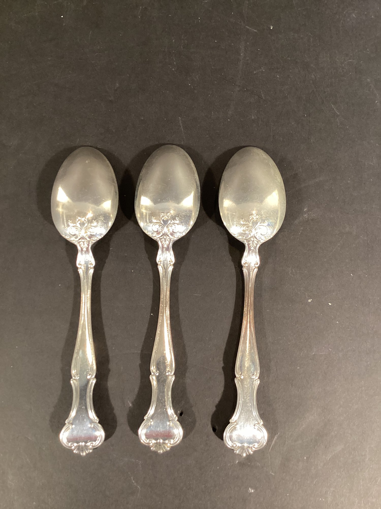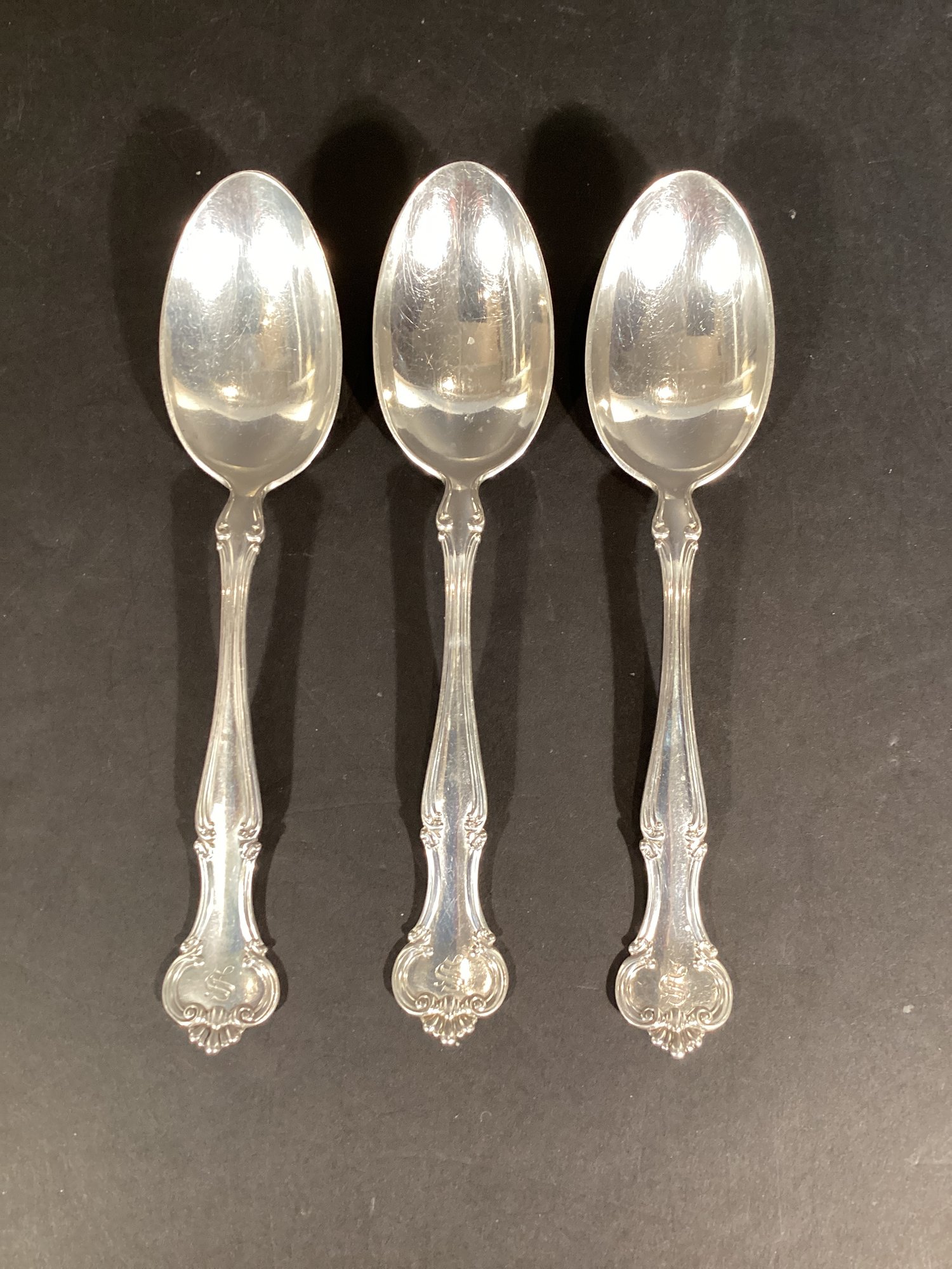 Here are three beautiful sterling silver serving spoons in the ‘Cromwell’ pattern.
