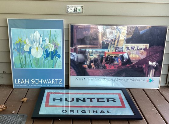 we have three very nice and very different prints for your home. Each one has been professionally framed and is under glass with hanging wire on the back of each.