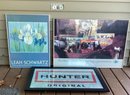 * The second print is also substantial size. This is a framed print of the brand ‘Hunter’, and this print has been designed in black, white, and red accents. This-too, has been professionally framed and has a wire the back for easy hanging. the black frame accentuates the print and is quite striking. This item measures approximately 30.00” in length and approximately 20.00” in height.