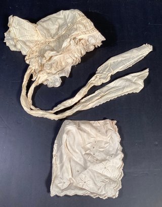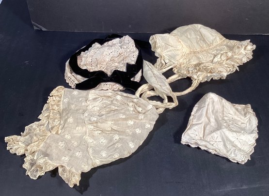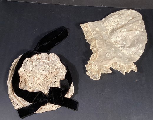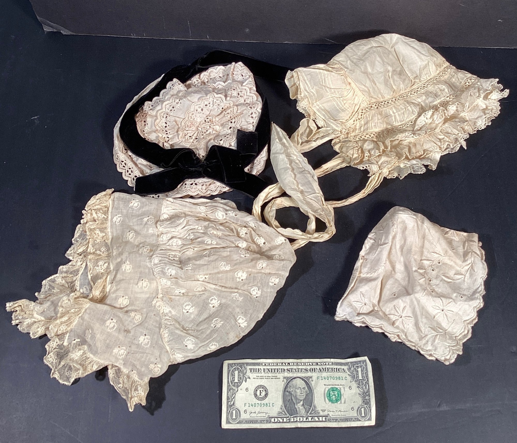 Here we have handmade cotton bonnets for your antique clothing collection.