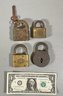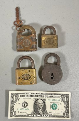 Four very nice old paddle locks. We have the key for one the other three do not have keys. All American made.