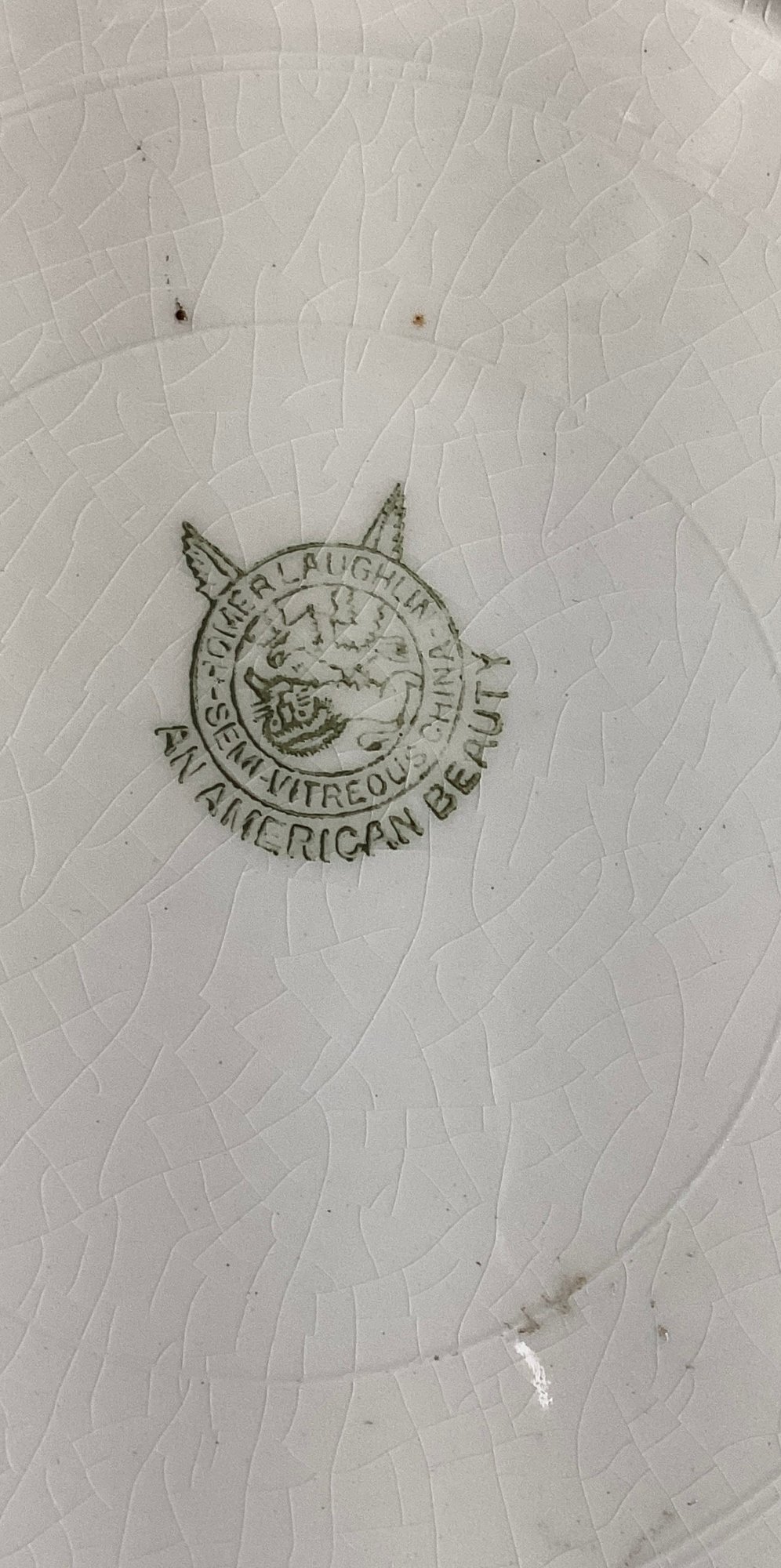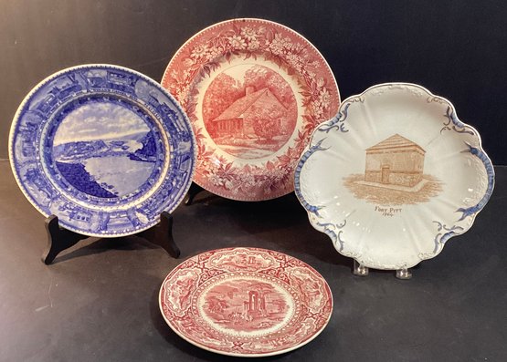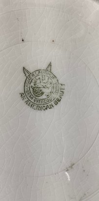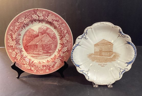 * Weiss-Laughlin ‘American Beauty’ Fort Pitt plate noting the year 1764 with hand painted edging with gilding. Measures 9.5”. Some light crazing and some gilding loss.