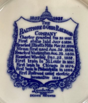 * flow blue style plate by Lamberton noting the Baltimore & Ohio Railroad Company