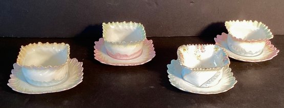 Here are four lovely antique porcelain dessert cups with accompanying saucers.