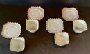 The dessert cups and saucers are not signed and appear to have had minimal use.