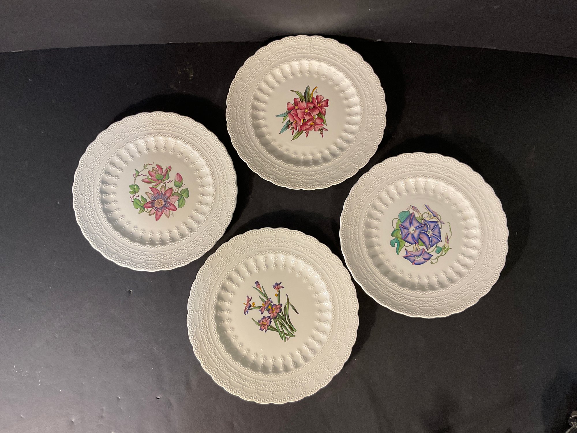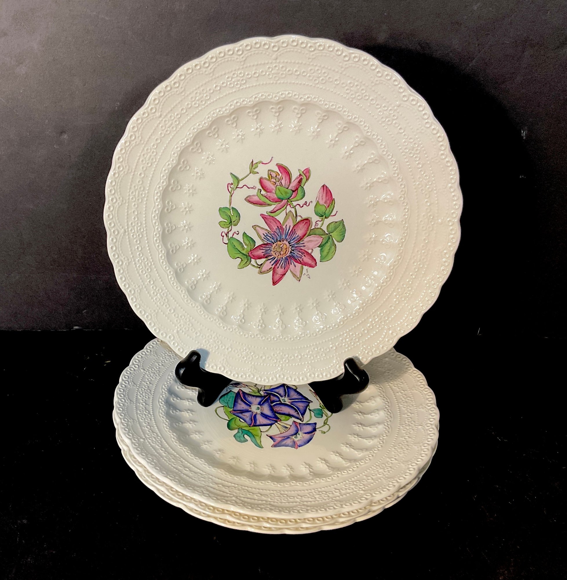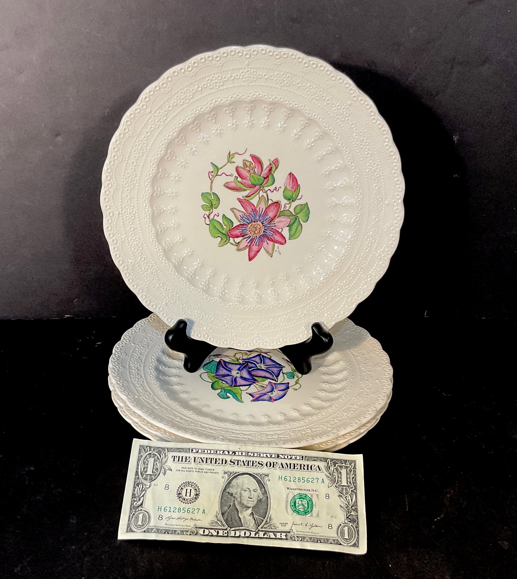 Very colorful luncheon plates with all different handpainted flowers. Great quality and condition. These plates were never used.