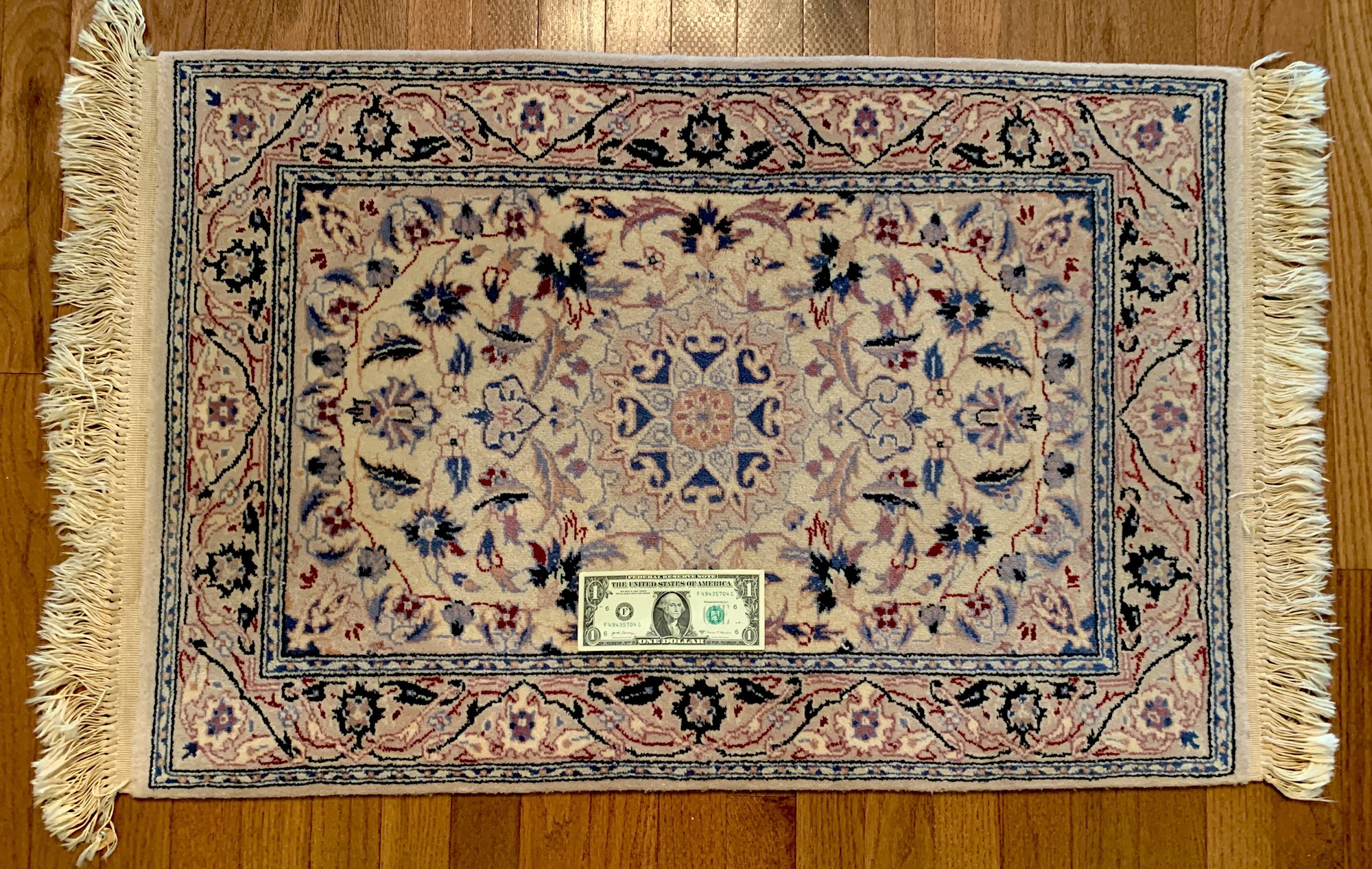 Good thick pile. Good quality, pleasing subtle colors. Pet free environment.very fine weave.