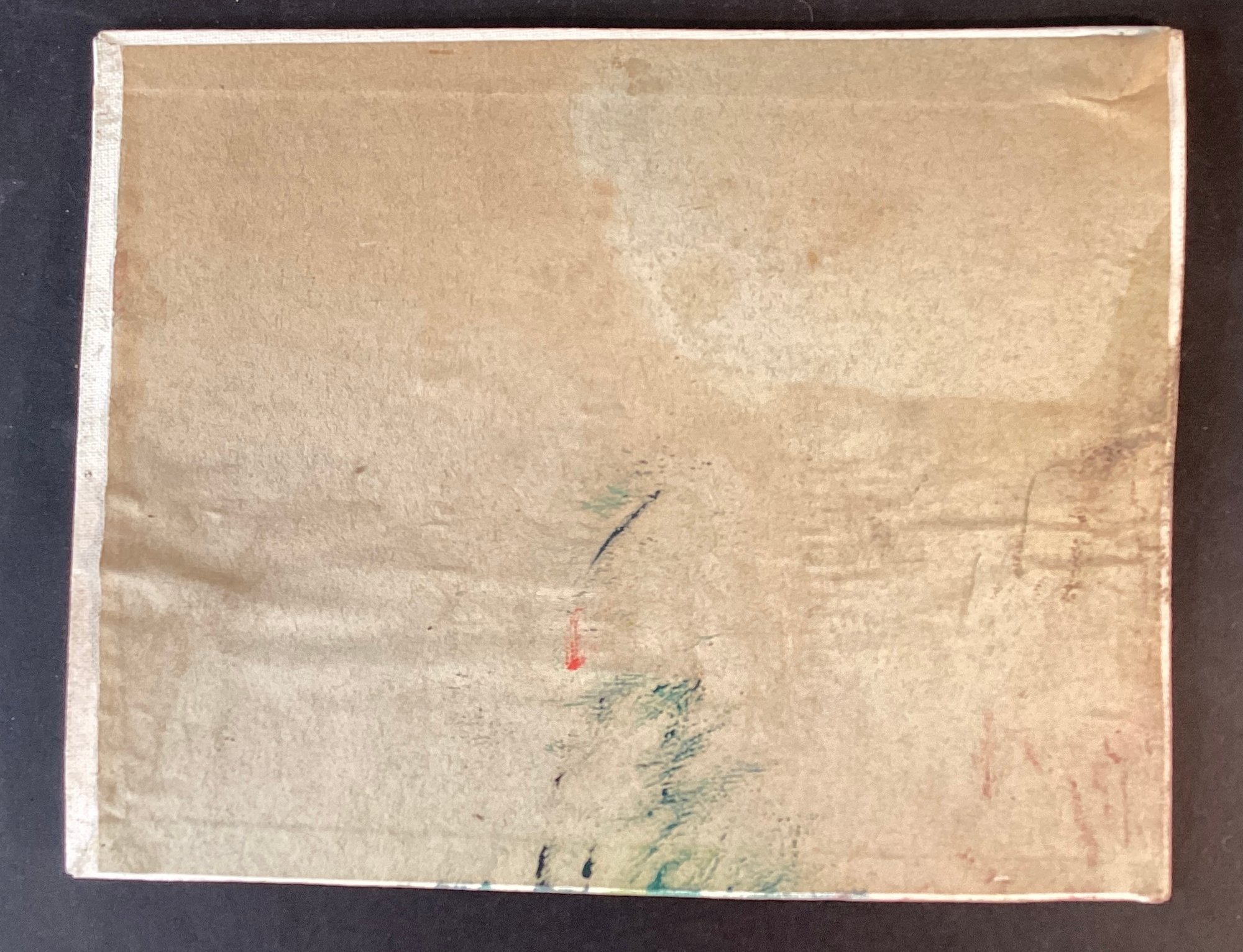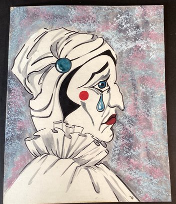 * a 12” x 15” sad jester with pen/ink watercolor and tempra on cardboard. This is not signed.