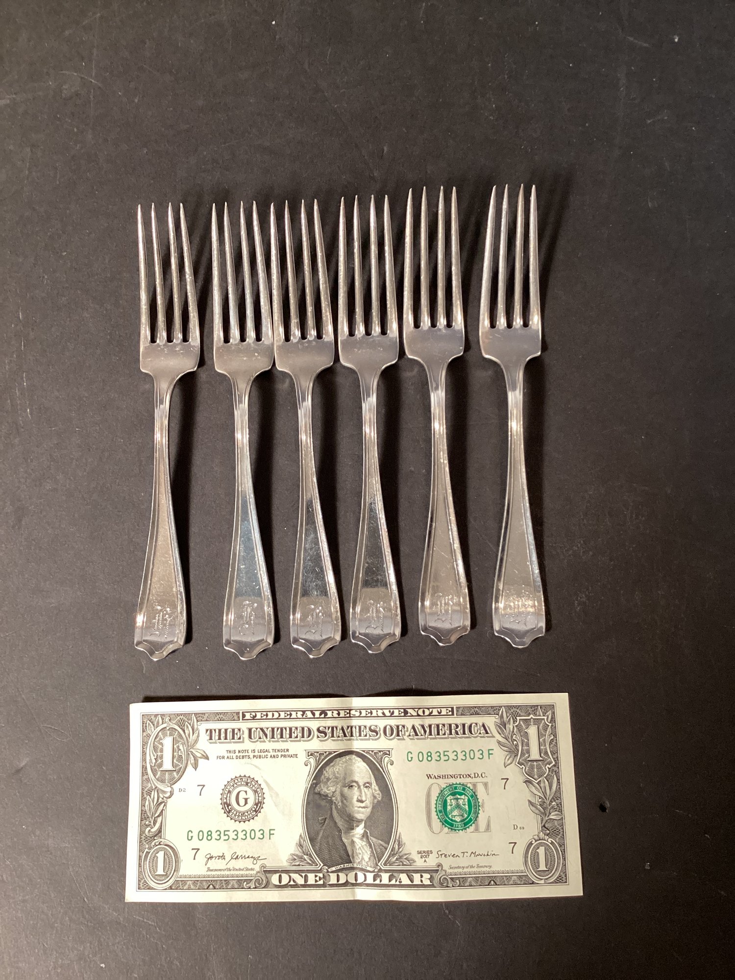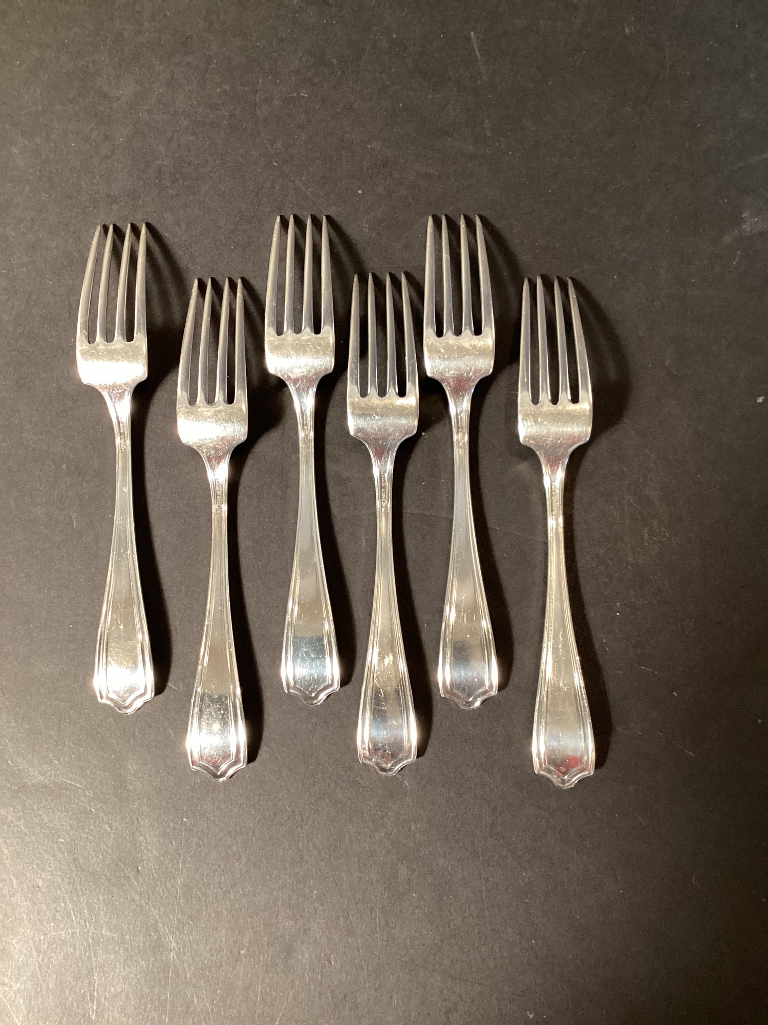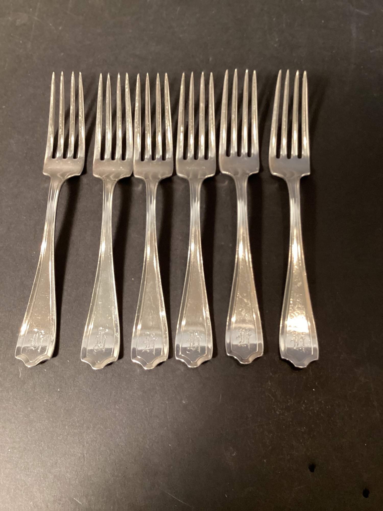 Here we have six beautiful sterling silver forks by Alvin silversmiths in the ‘Lorna Doone’ pattern, circa 1925.