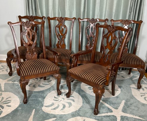There are 4 dining chairs and two dining arm chairs.