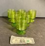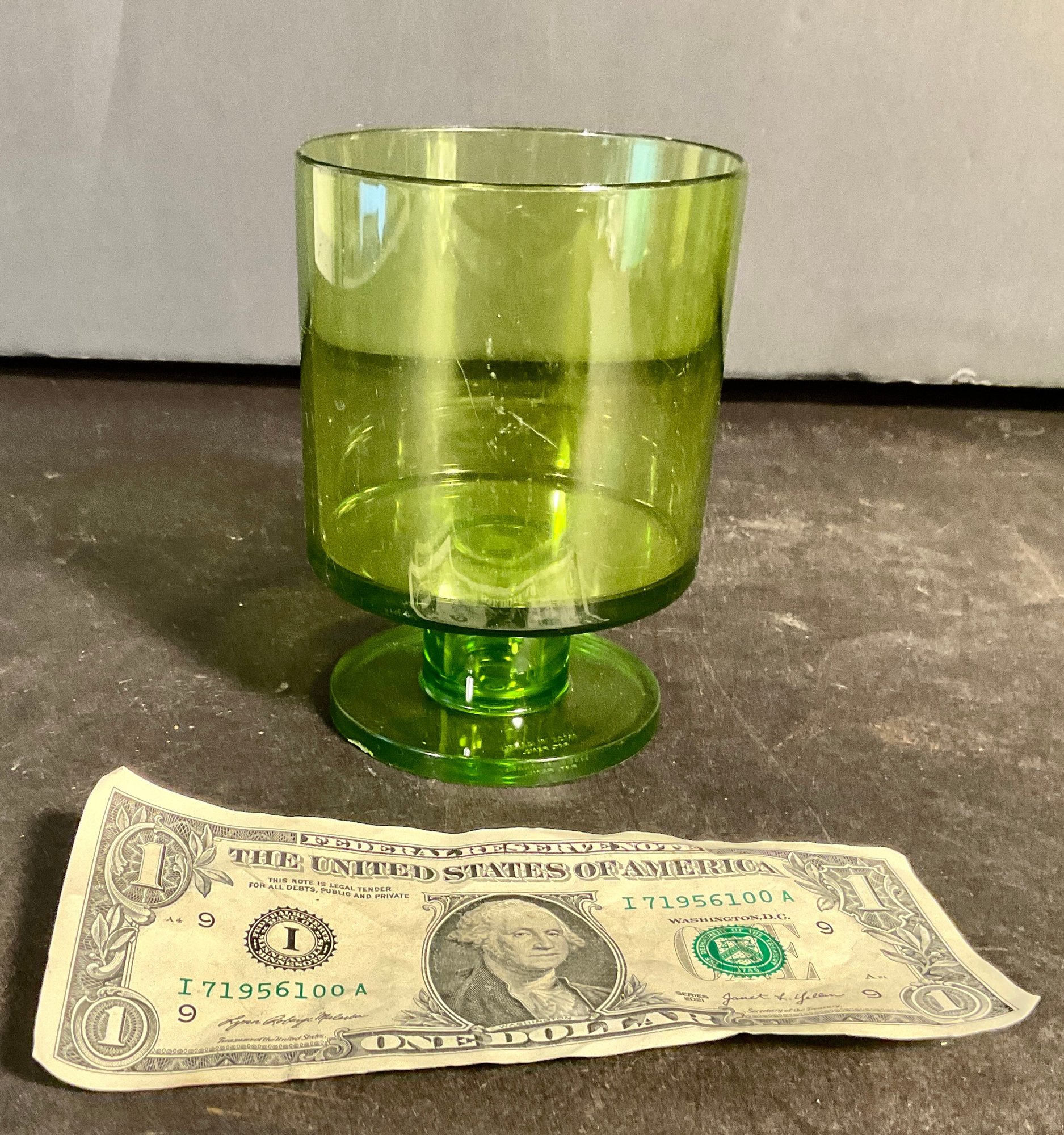 All six of these glasses are stamped with a signature ready to use with age-appropriate wear great color, interesting mid-century modern design