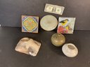 Here we have an interesting lot of studio and art pottery, a nice Frankoma trivet a couple of pottery tiles and vases. Nice interesting lot of vintage items. Signed Mandy THODY, BAKER, FRANKOMA ROOSTER TRIVET.