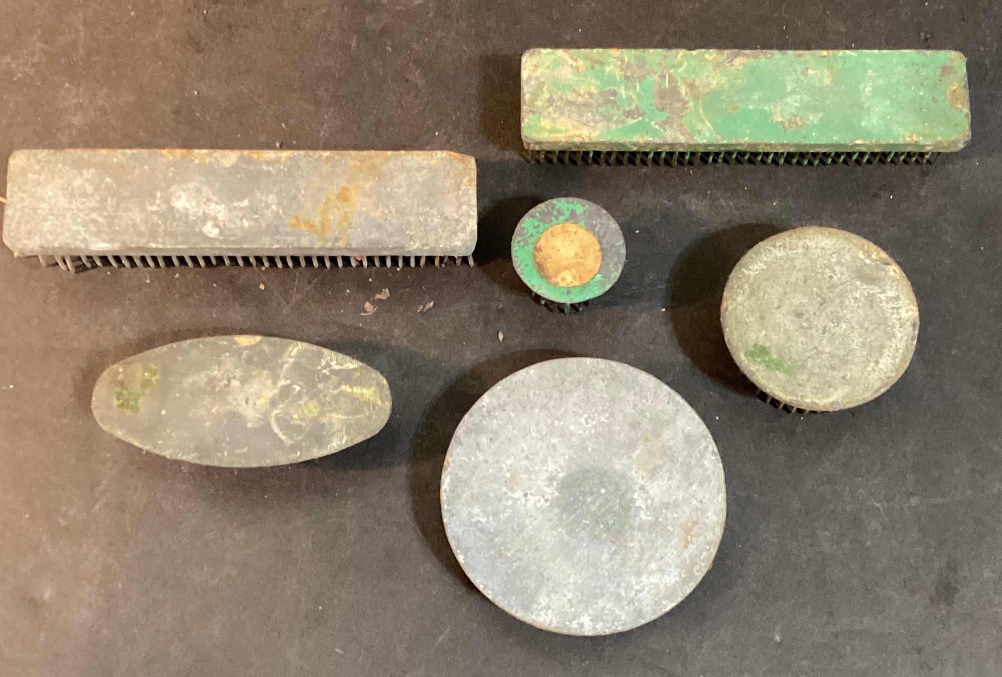 Here we have six vintage metal frogs for floral arrangements.