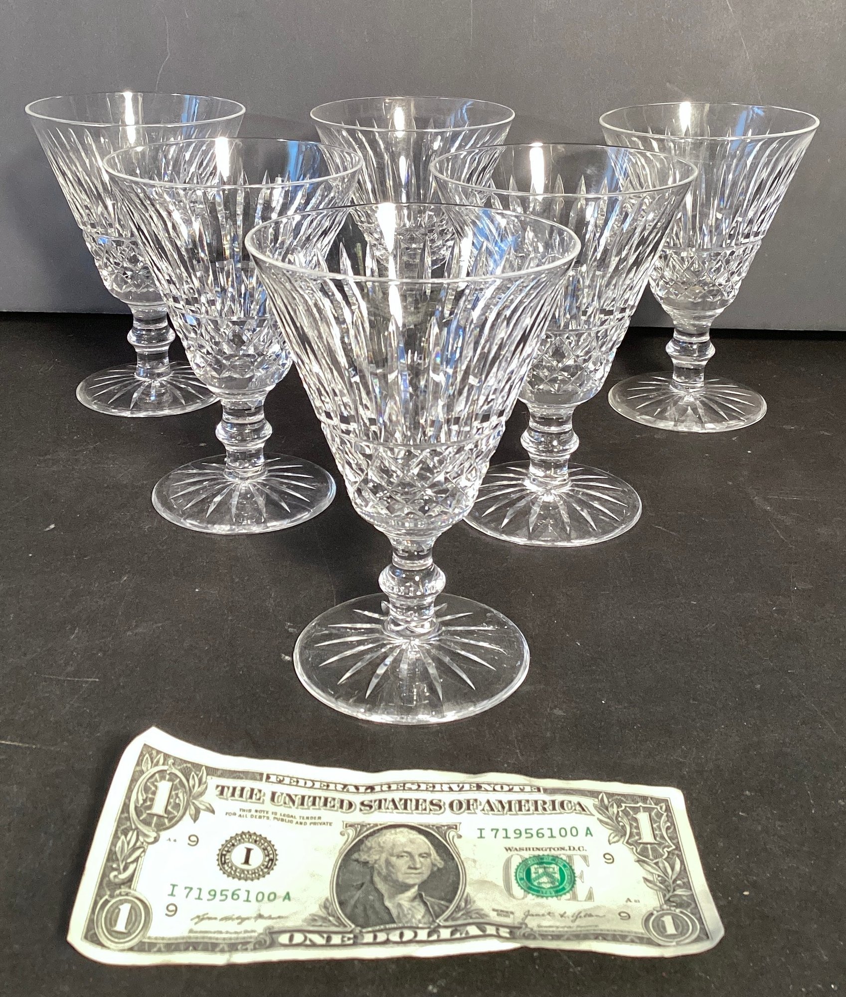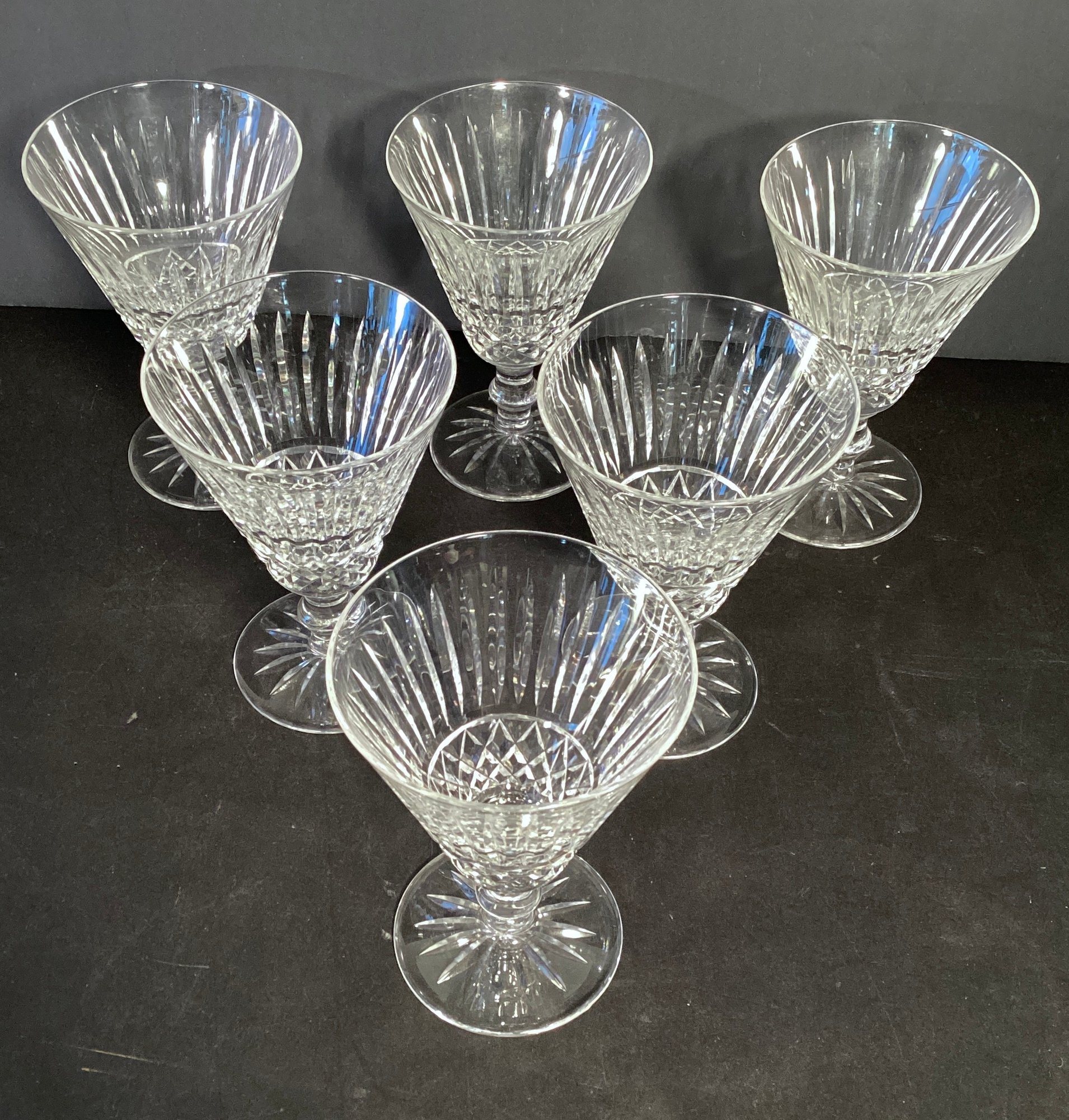 Here we have six Waterford cut crystal Claret wine glasses.