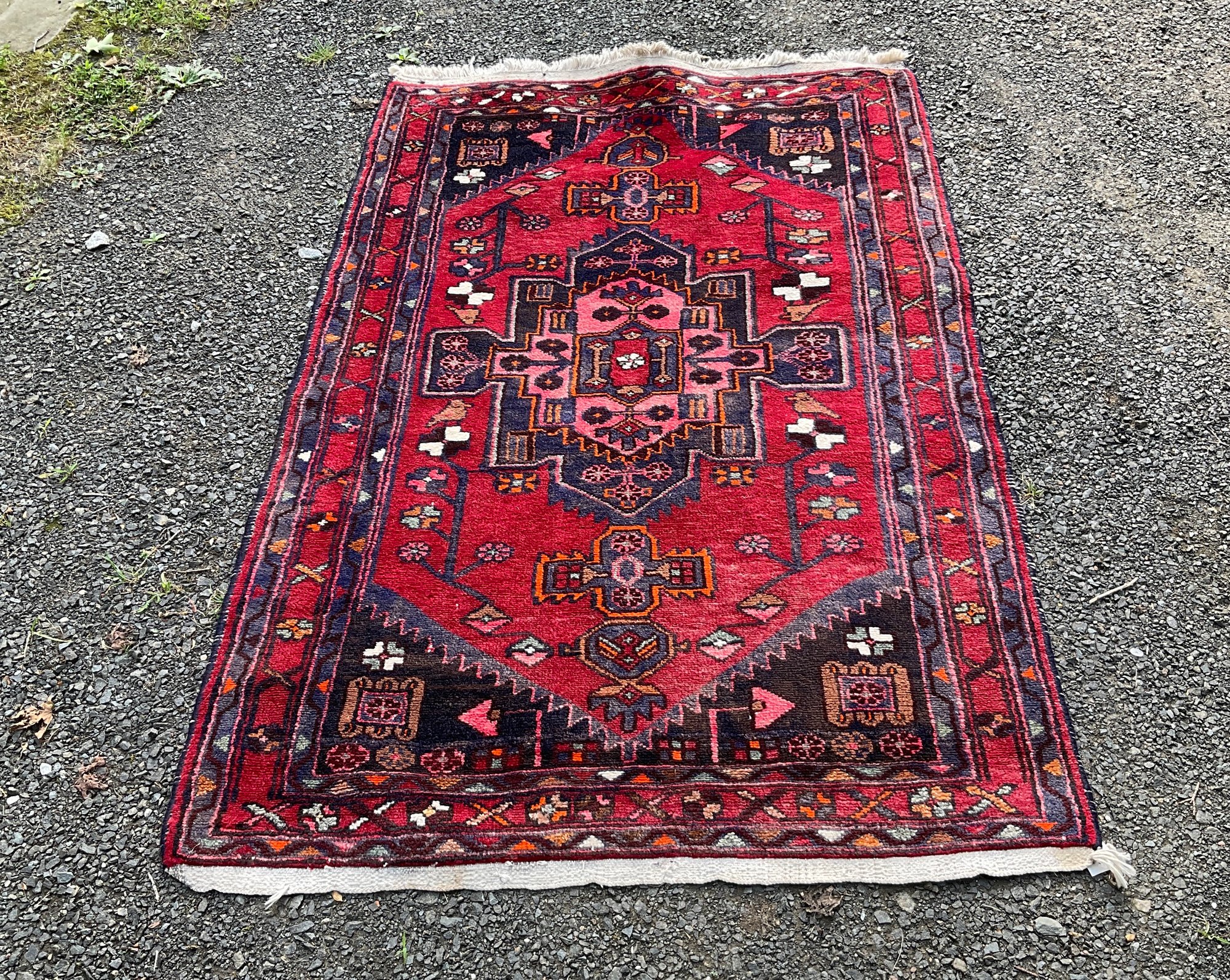 Here is a very good quality hand made wool rug made in Afghanistan in the 1940-1950 era. Very pleasing colors and strong design. No Damage or defects. First Quality.