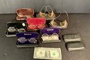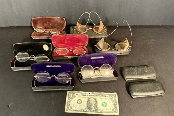 Measurements vary. There are also two empty cases that will come with the slot along with the seven glasses that are in cases. Some of the glasses are bifocals.