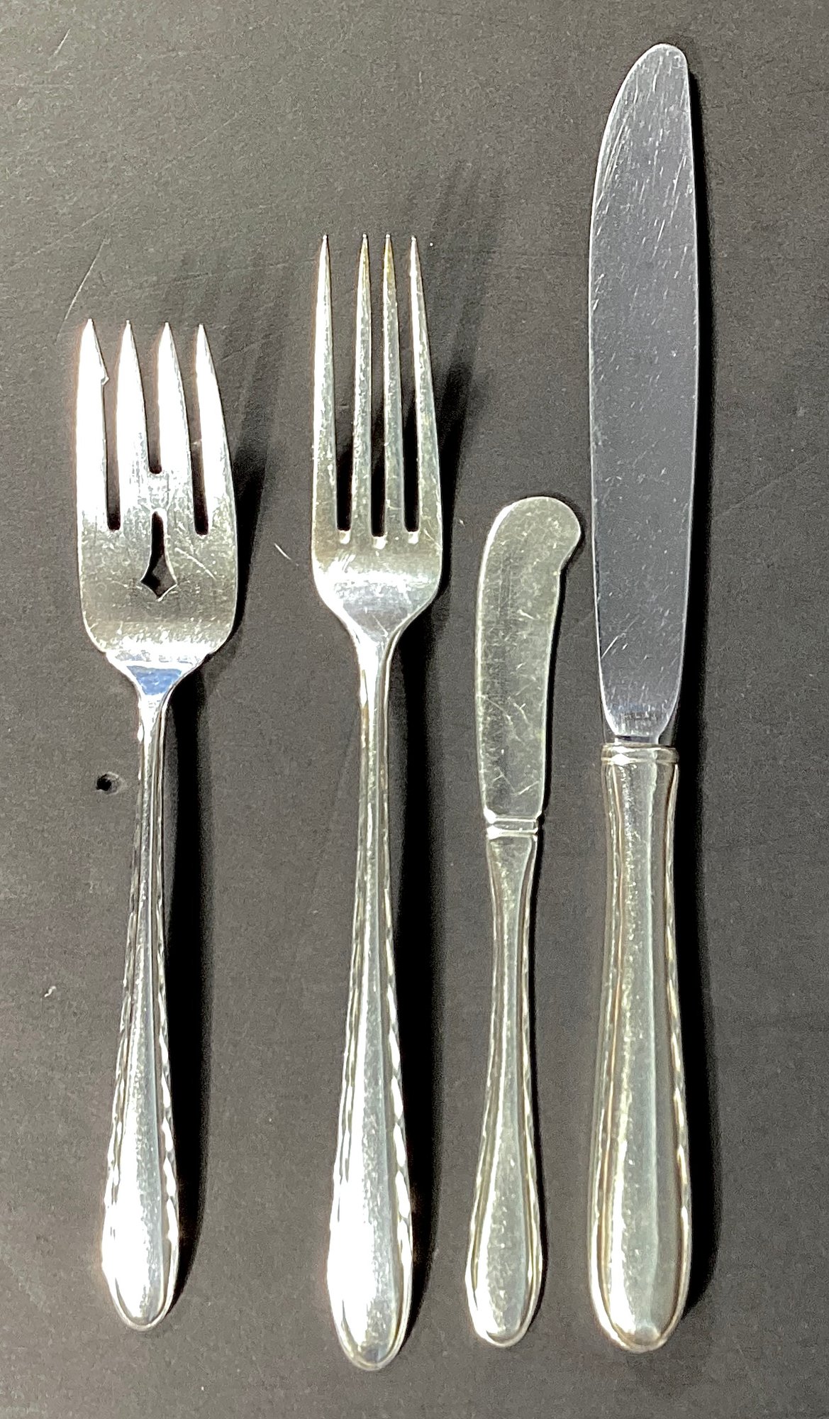 No monograms, and lightly used with great care taken of these sterling flatware items.