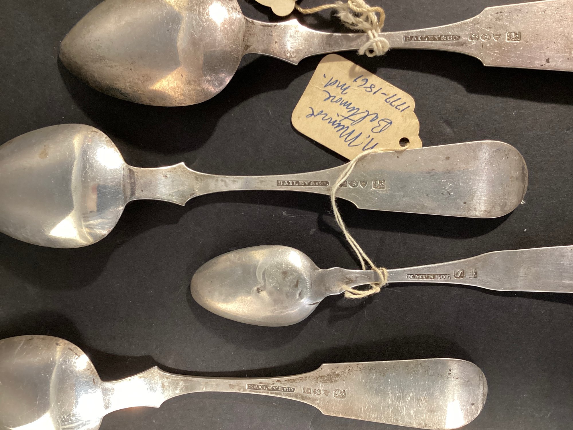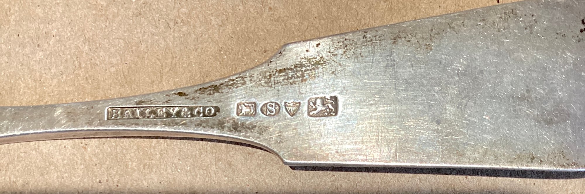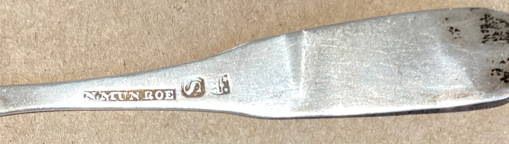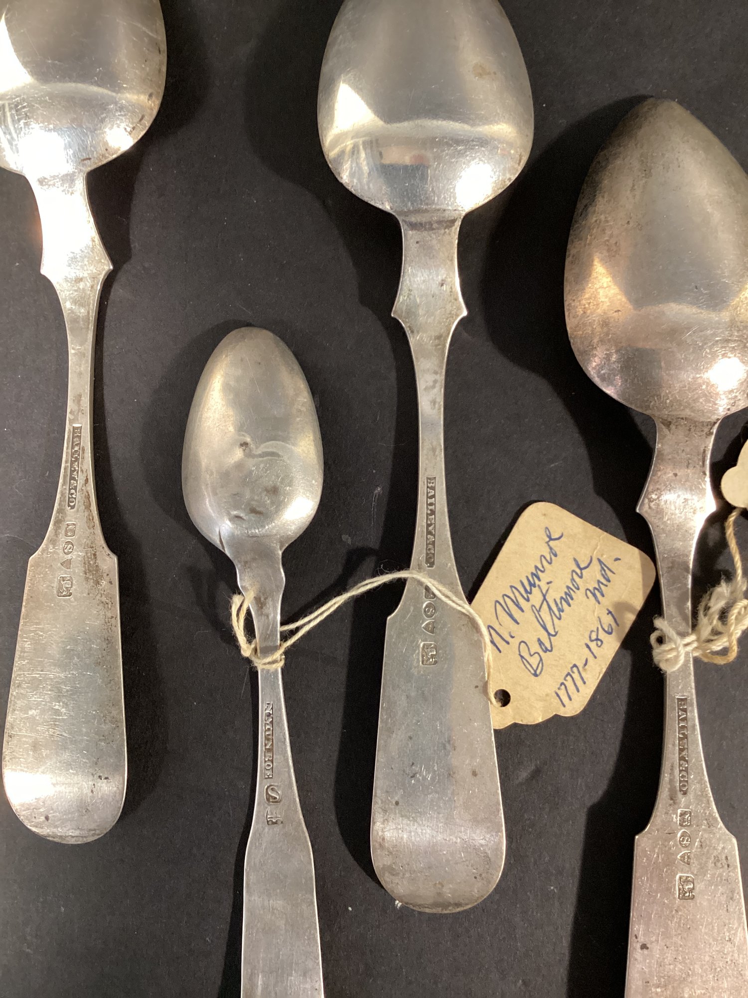 The spoons are from good to excellent condition, and hail from such places as Baltimore, Maryland, Philadelphia from the 1850s, Boston, Massachusetts mid 1850s, Newburyport Massachusetts from 1814, Boston, Massachusetts from 1835 and Farmington, Connecticut 1847.