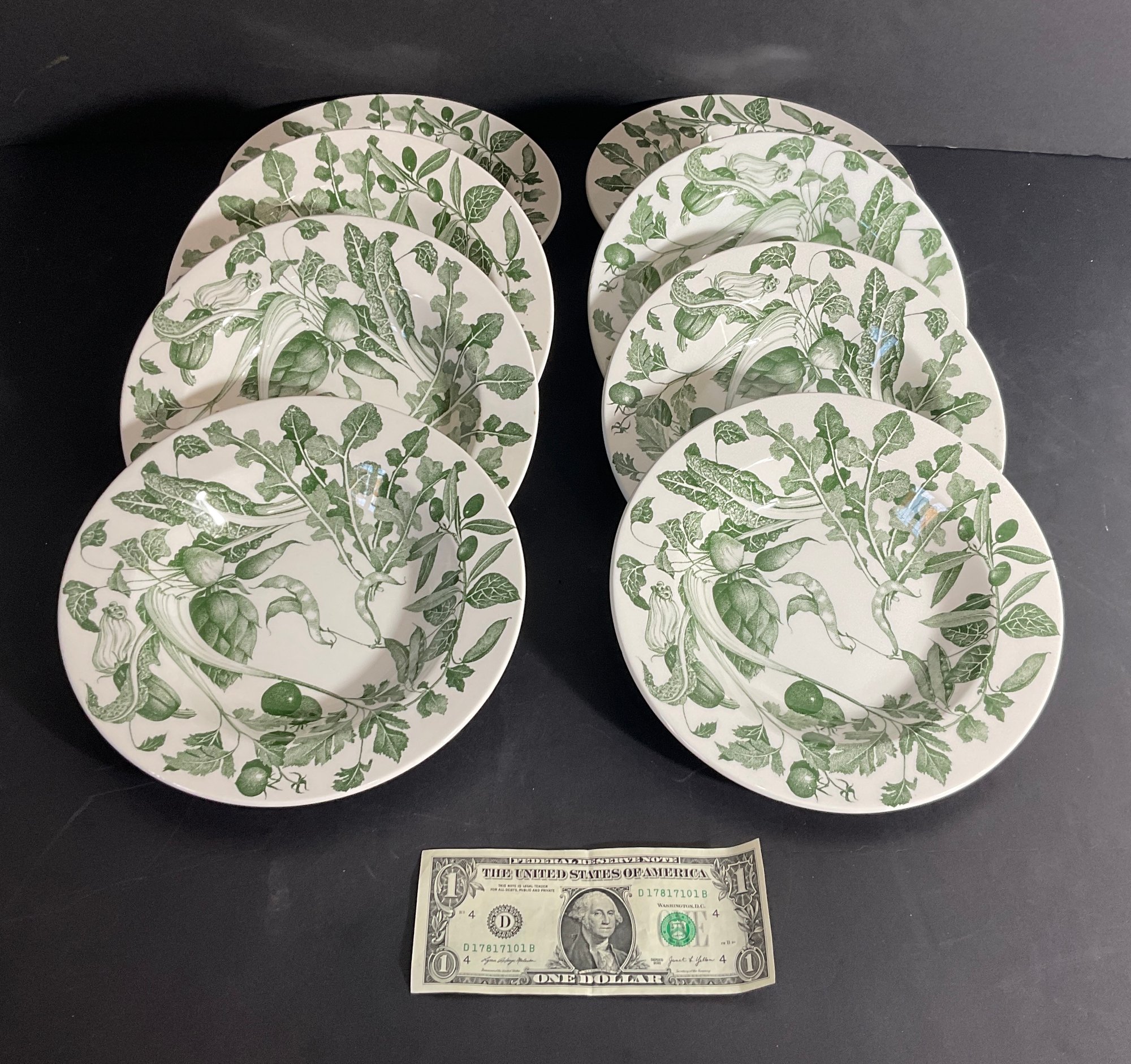 Here we have Eight very nice bowls for your home. The bowls have a delicate green design on white ceramic bowls, and have a high glaze.